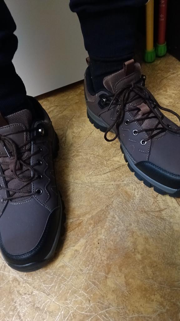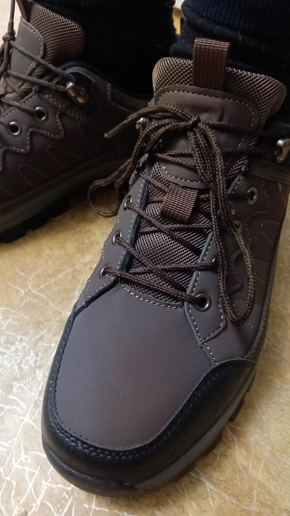Зимние укороченные ботинки - самая удобная форма обуви для прогулок с детьми и занятия спортом. Доставка составила около двух недель. При транспортировке ничего не повредилось и обувь пришла без брака. Внутри были вставки, чтобы не было замятин. Ботинки тяжелые и удобные. В таких комфортно находится и проходит больше расстояния. Они свободные. Поэтому хорошие для широкой стопы. Выбирая размер, ориентировалась на таблицу продавца. Все хорошо подошло. По стопе у мужа - 26 см. Такие хорошо подойдут на прохладную и дождливую погоду, а еще для зимы. Сверху - специальный не промокаемый материал, внутри утеплено мехом. Покупкой остались довольны. Изготовлены ботинки качество и смотрятся стильно. К приобретению рекомендую.