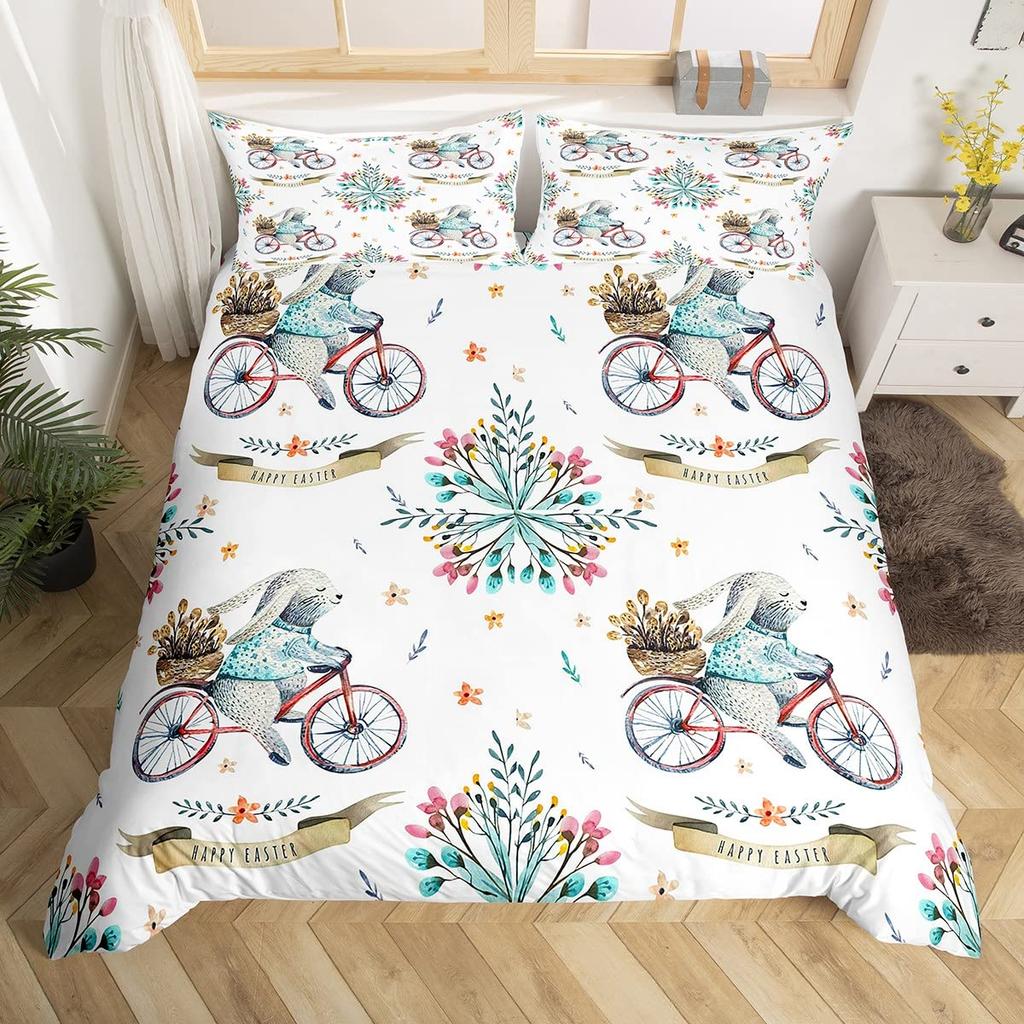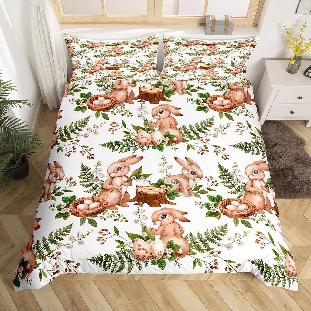 Милый пасхальный кролик пододеяльник Twin Queen Мультяшный кролик комплект постельного белья Kawaii Animal одеяло покрывало весенние цветы покрывало