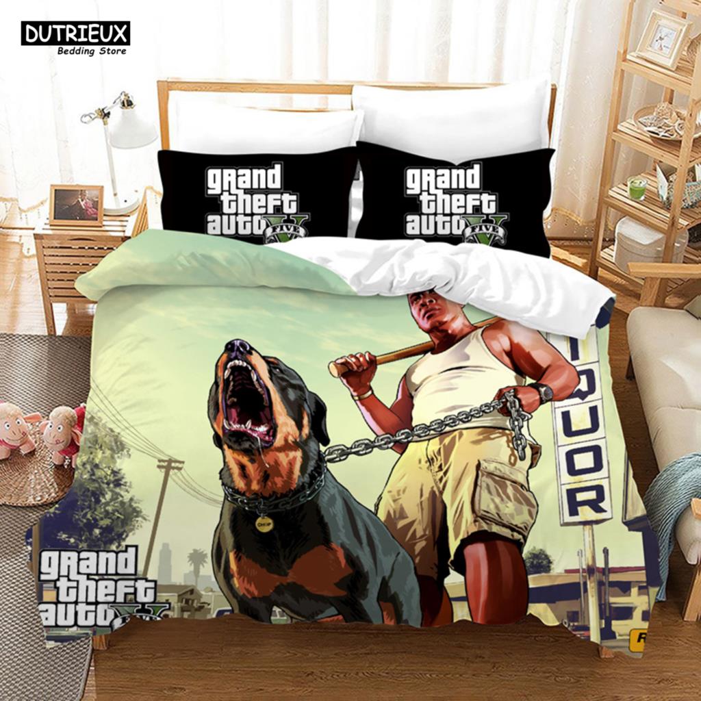 Комплект мультяшного постельного белья на тему игры GTA V с пододеяльником и наволочкой, включая одеяло — купить товар онлайн с бесплатной доставкой по всему миру!