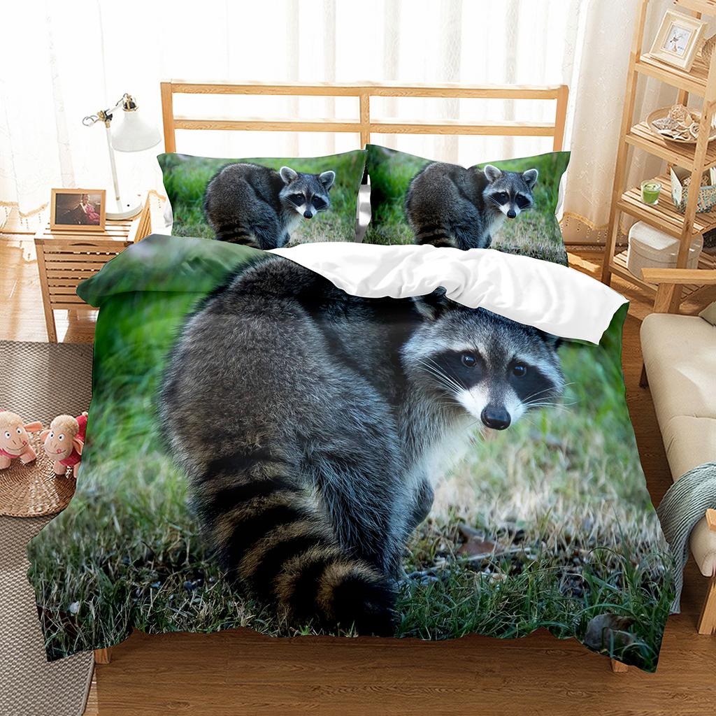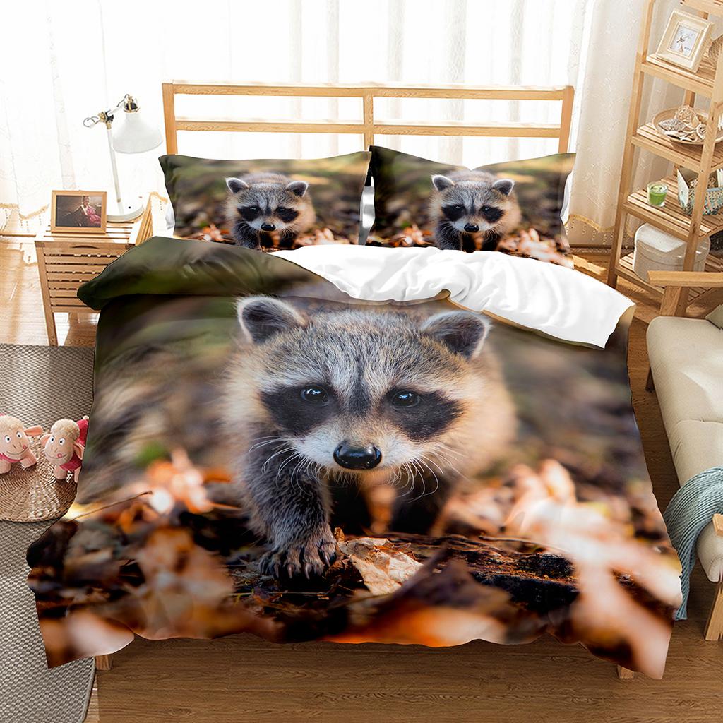 Raccoon Duvet Cover Set Cute Wild Animals Polyester Comforter Cover King Queen Size For Boy Girl Bedding Set With Pillowcase