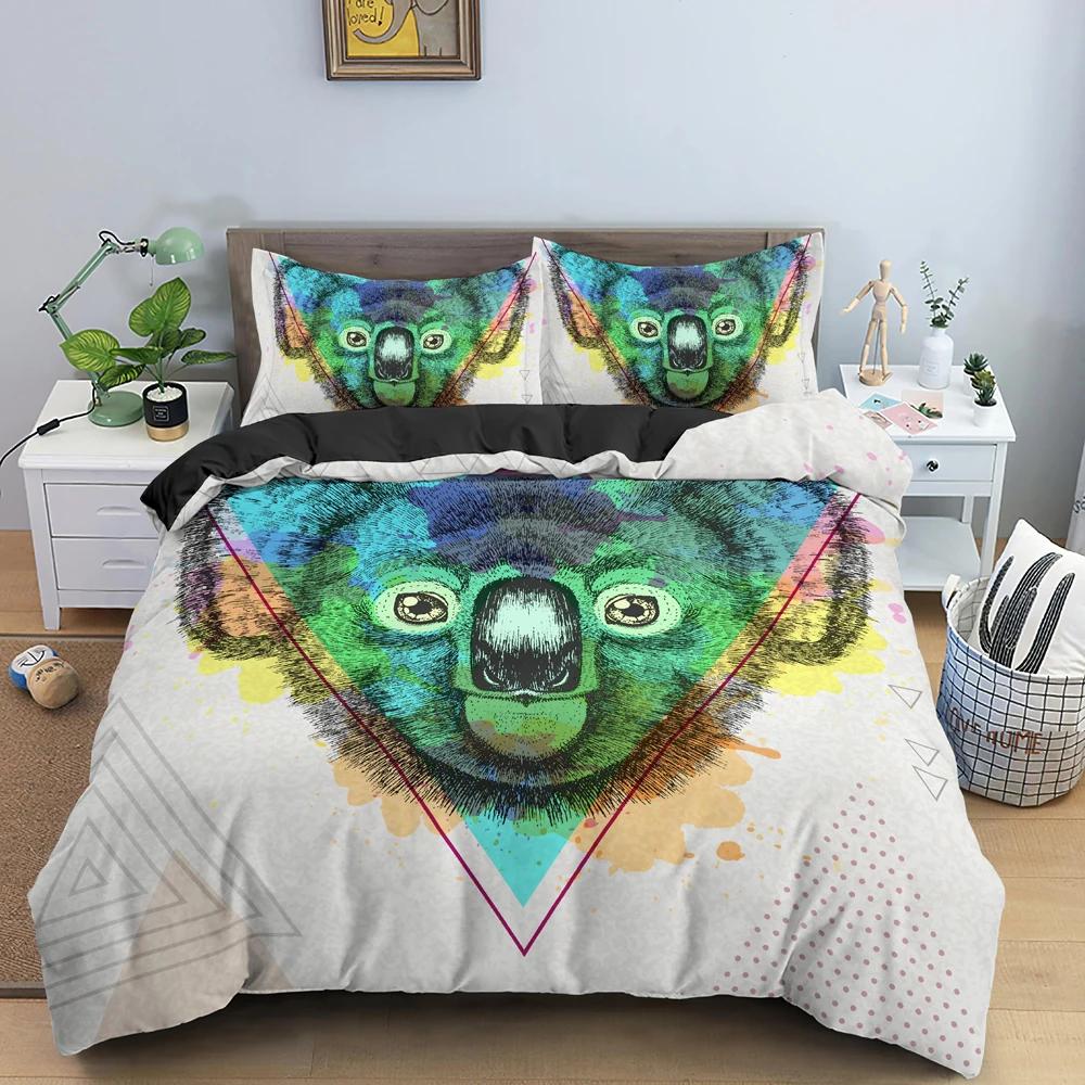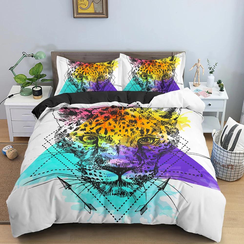 Polygon Cartoon Animal Pattern Duvet Cover Watercolor Lion Background Polyester Bedding Set King Queen Size 2/3Pcs For Kids Boys