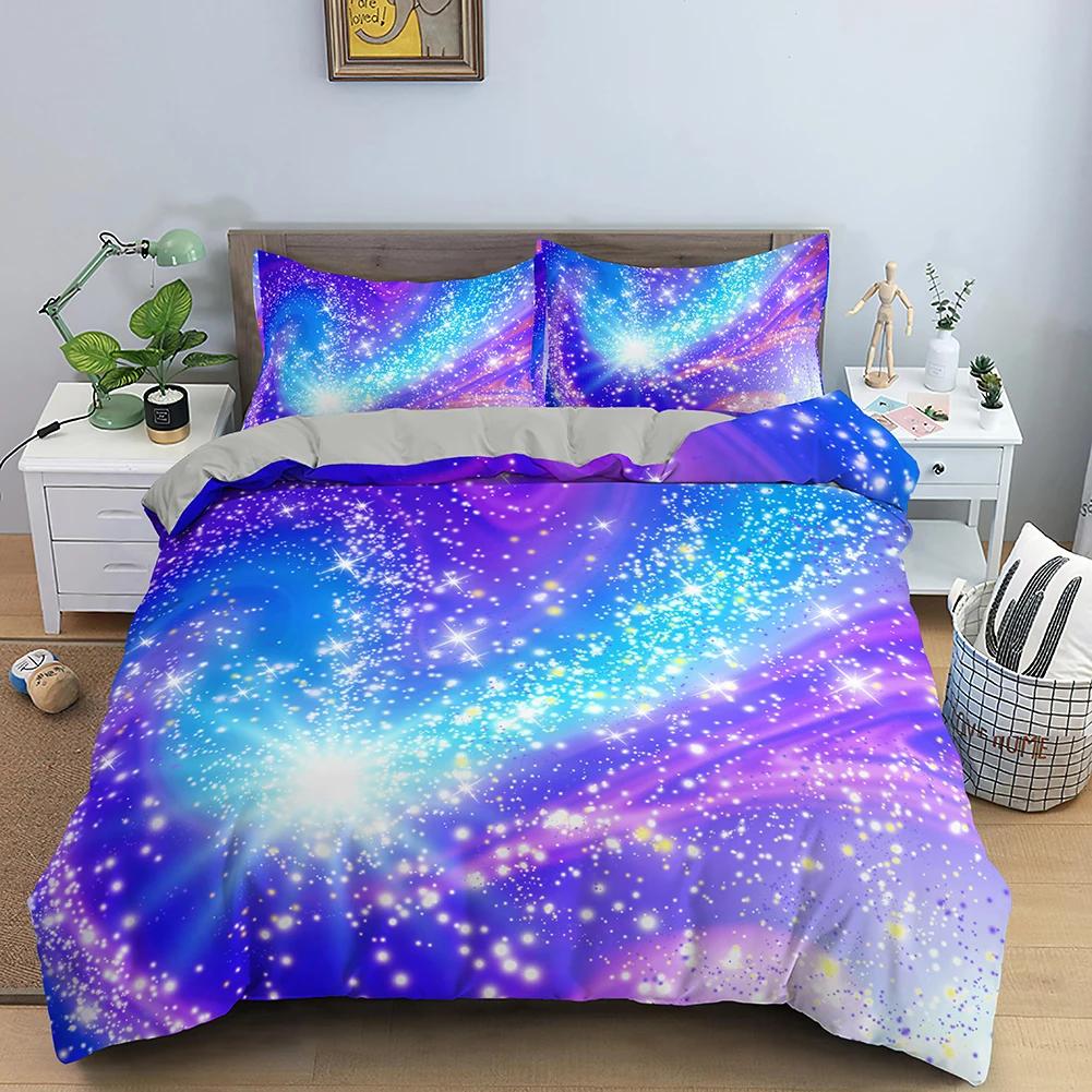 Duvet Cover Colorful Starry Bedding Set Outer Space Comforter Cover Sky Light Printed Bedspread For Kids