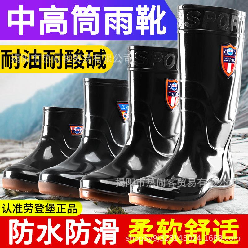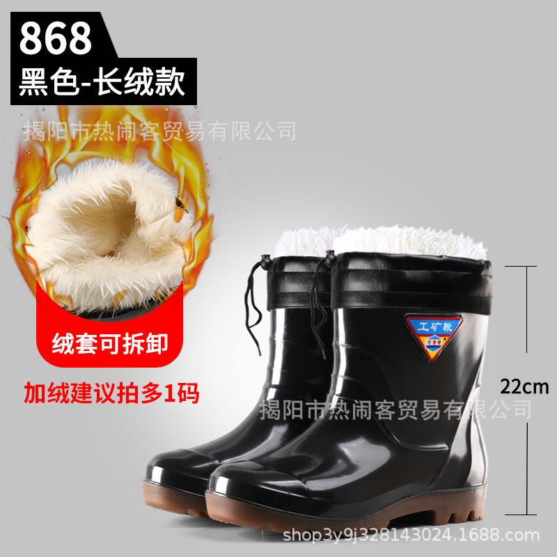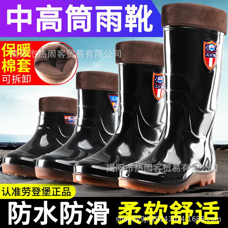 [Лоуденбург] Дождевые ботинки с бархатной теплой высокой голенью, мужские дождевые ботинки на подкладке из хлопка, с длинной голенью, нескользящие, водонепроницаемые резиновые ботинки, теплые ботинки для мужчин