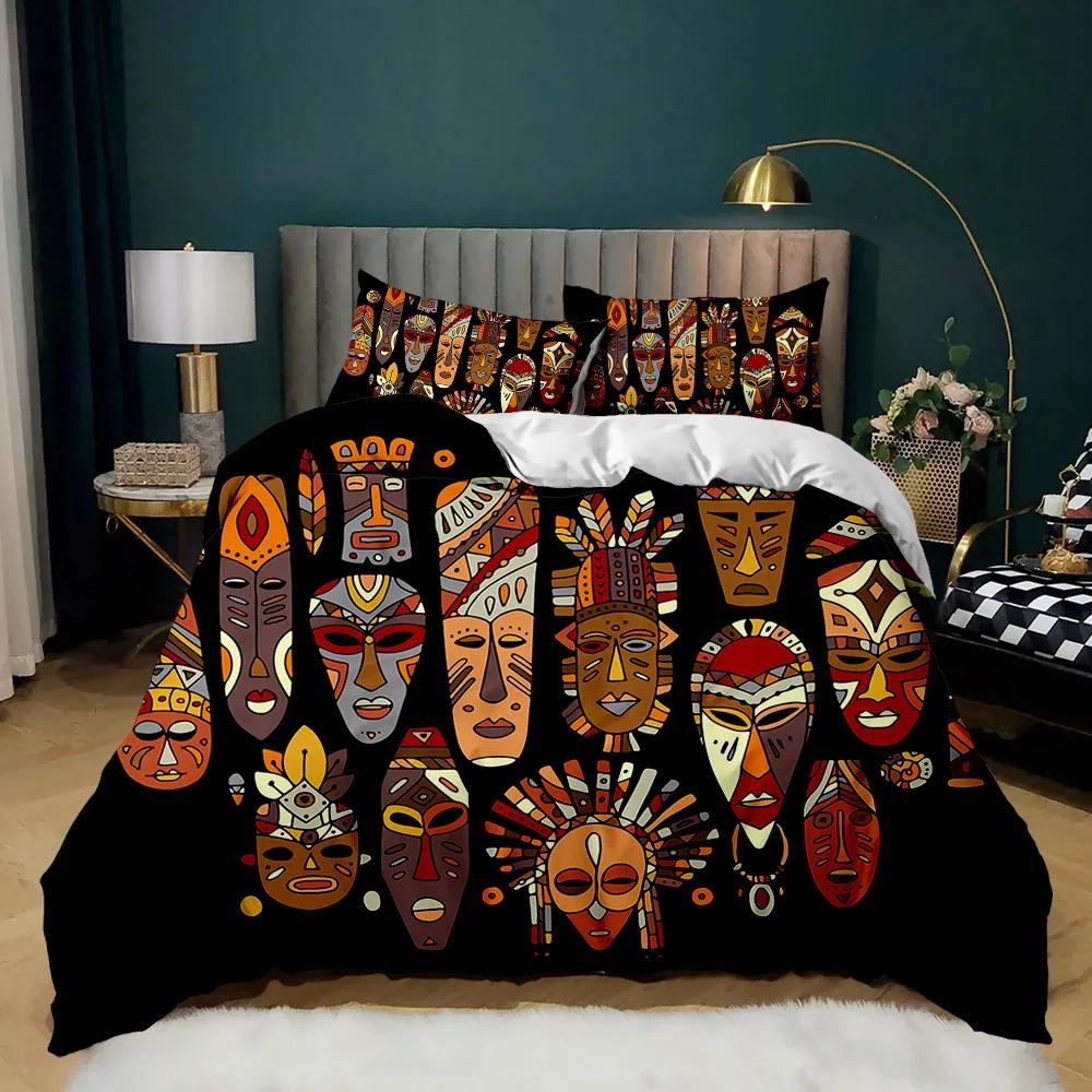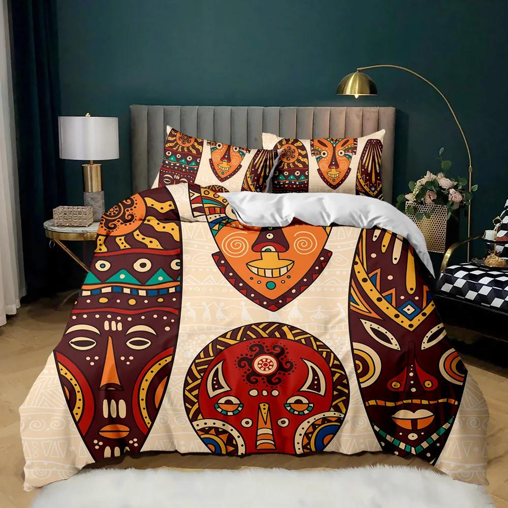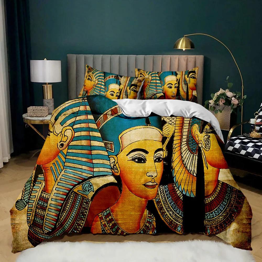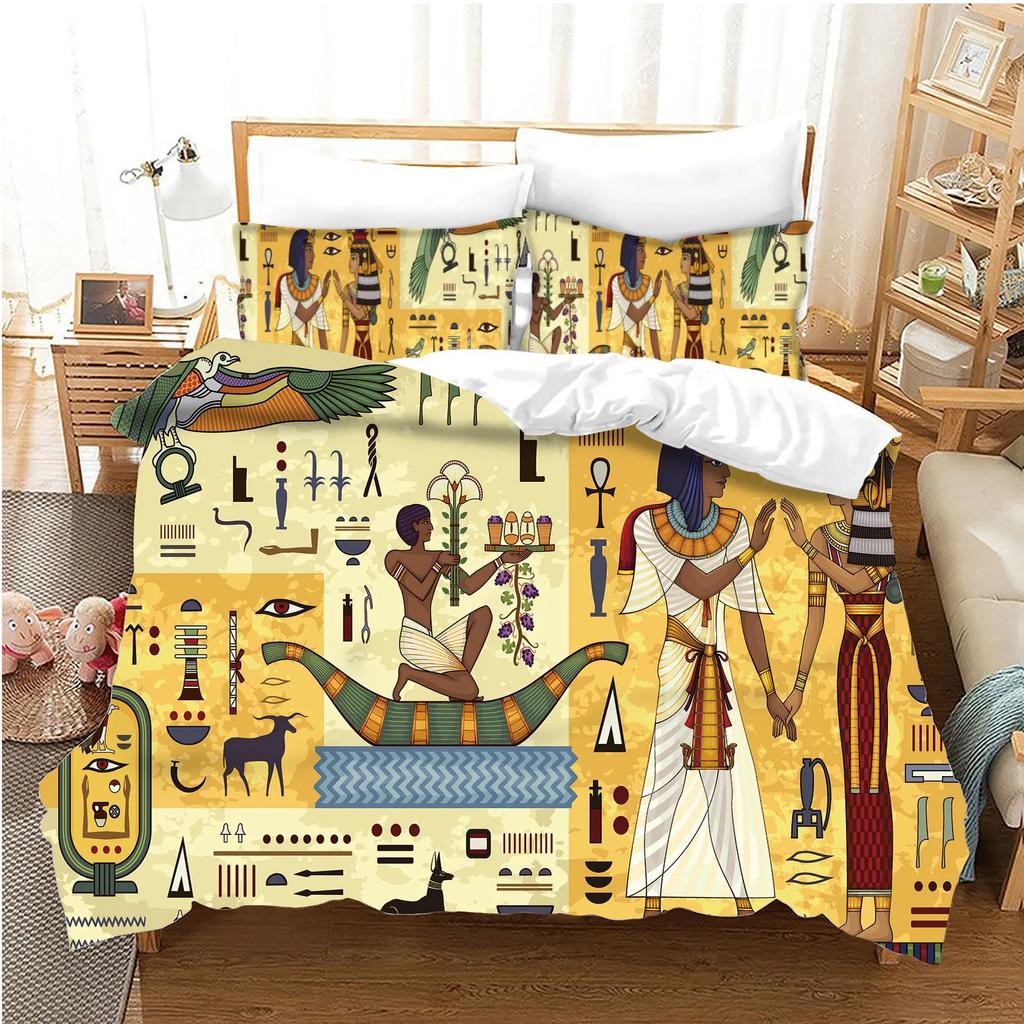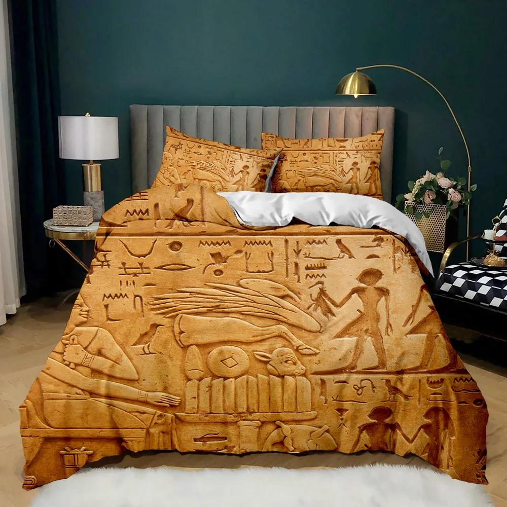 Постельные комплекты «Фараон», Комплект пододеяльника 3D «Древний Египет», Декор племени, Размер кинг для взрослых, Египетская пирамида, Полиэстер