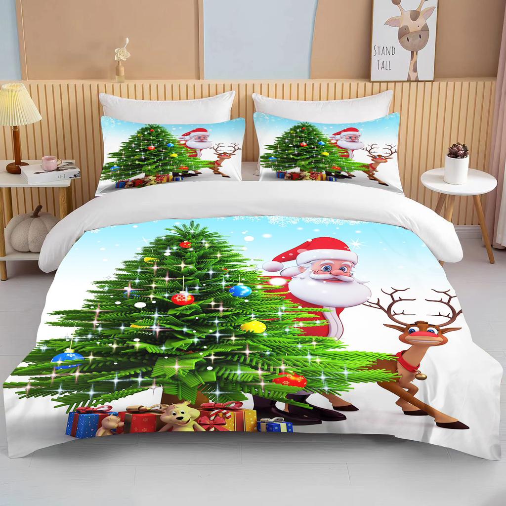 Рождественский пододеяльник односпальный для мальчика и девочки с рисунком снеговика Санта-Клауса, синий комплект постельного белья из полиэстера с рождественской елкой, пододеяльник