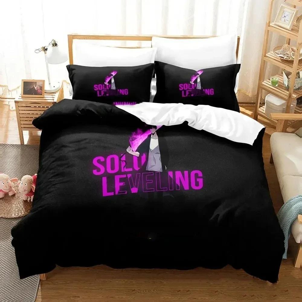 3D Печать Мода Аниме Поднятие Уровня в Одиночку Комплект Постельного Белья Мальчики Девочки Полуторный Двуспальный Королевский Размер Пододеяльник Наволочка Кровать мальчики Взрослая Спальня