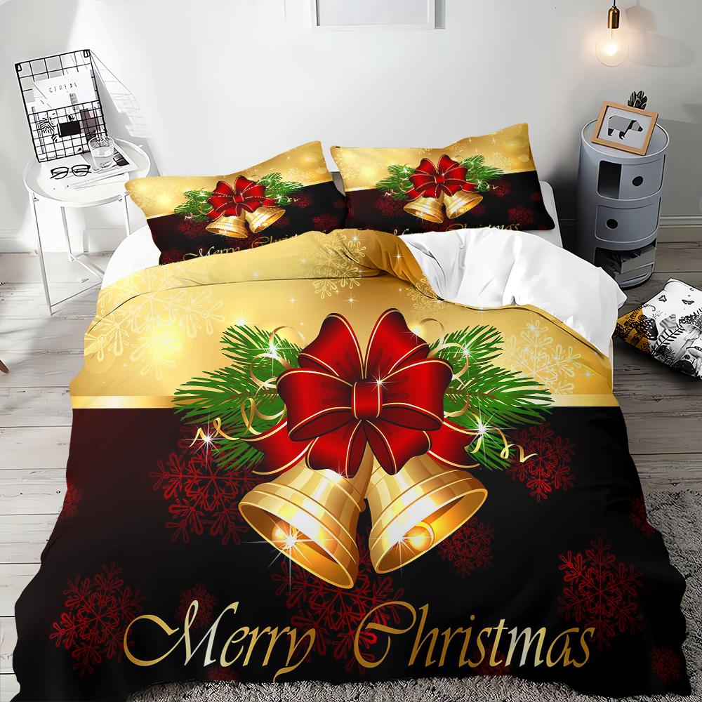 Веселого Рождества пододеяльник Золотой колокольчик бант комплект постельного белья для детей подростков праздничные подарки украшение спальни Queen King Полный размер