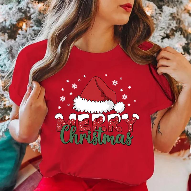 Рождественская футболка с принтом Летняя повседневная графическая футболка Женская футболка с коротким рукавом Рождественские футболки Футболки с круглым вырезом