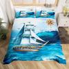Комплект пододеяльника для парусника Размер Твин Кинг Квин Морская тема Чайка Постельный комплект Микрофибра Рустикальная деревянная доска Пододеяльник