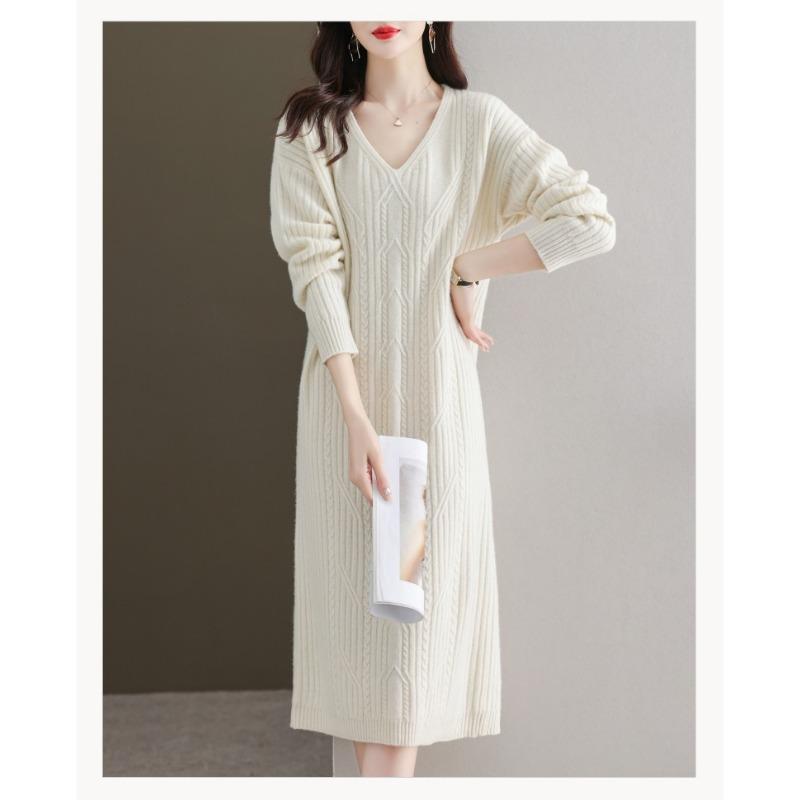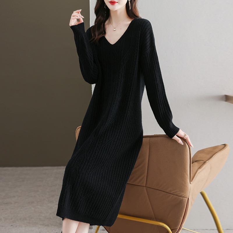 Осенне-зимнее платье женское длинное до колена ленивый свитер юбка новая с пальто с вязаной нижней юбкой