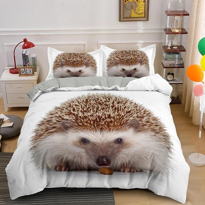 Пододеяльник с изображением ежа King Queen 3D Lovely Animal Комплект постельного белья для детей, подростков, взрослых, дикая природа, пододеяльник, наволочка, детские подарки