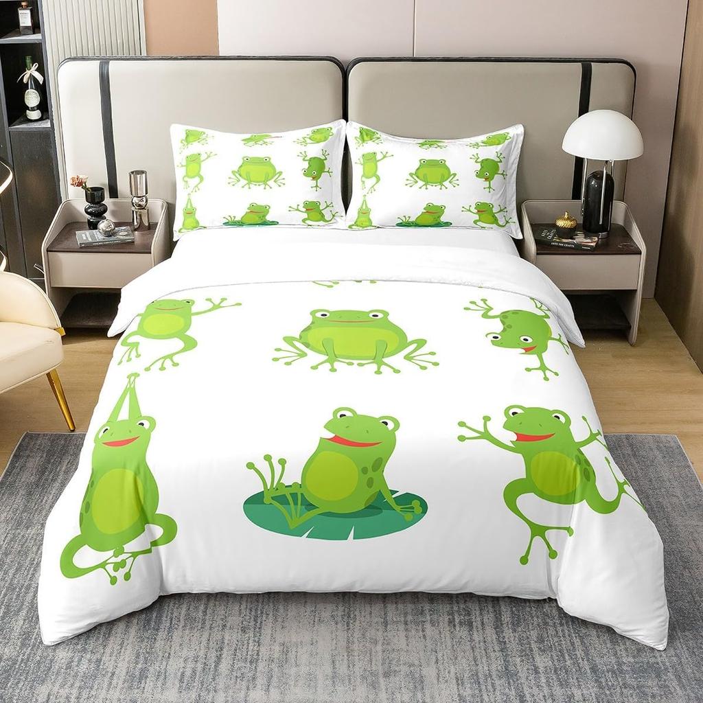 Мультяшный комплект пододеяльника с лягушкой, Милый комплект постельного белья для двуспальной кровати с животными для мальчиков, девочек, подростков, Микрофибра, Застежка-молния, Пододеяльник с наволочкой