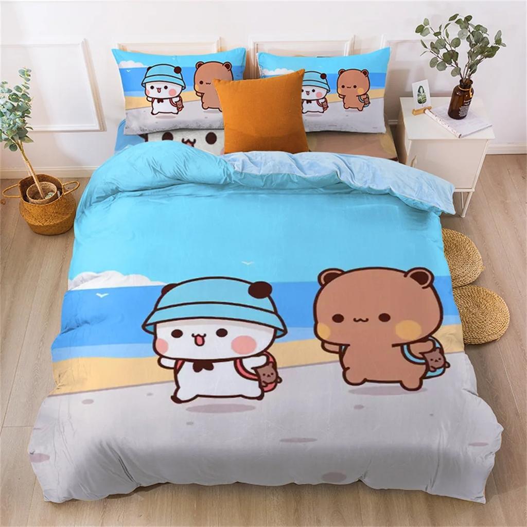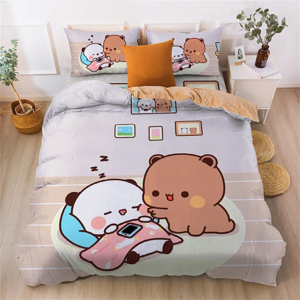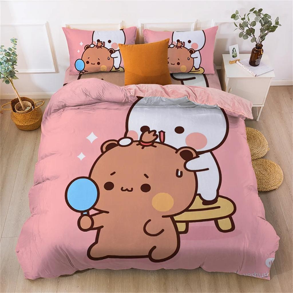 Милый Постельный Комплект с Мишками, Пододеяльник с Принтом Мишек Бубу Дуду для Детей Мальчиков Девочек Подростков, Пододеяльник с Мультяшным Животным Одиночный