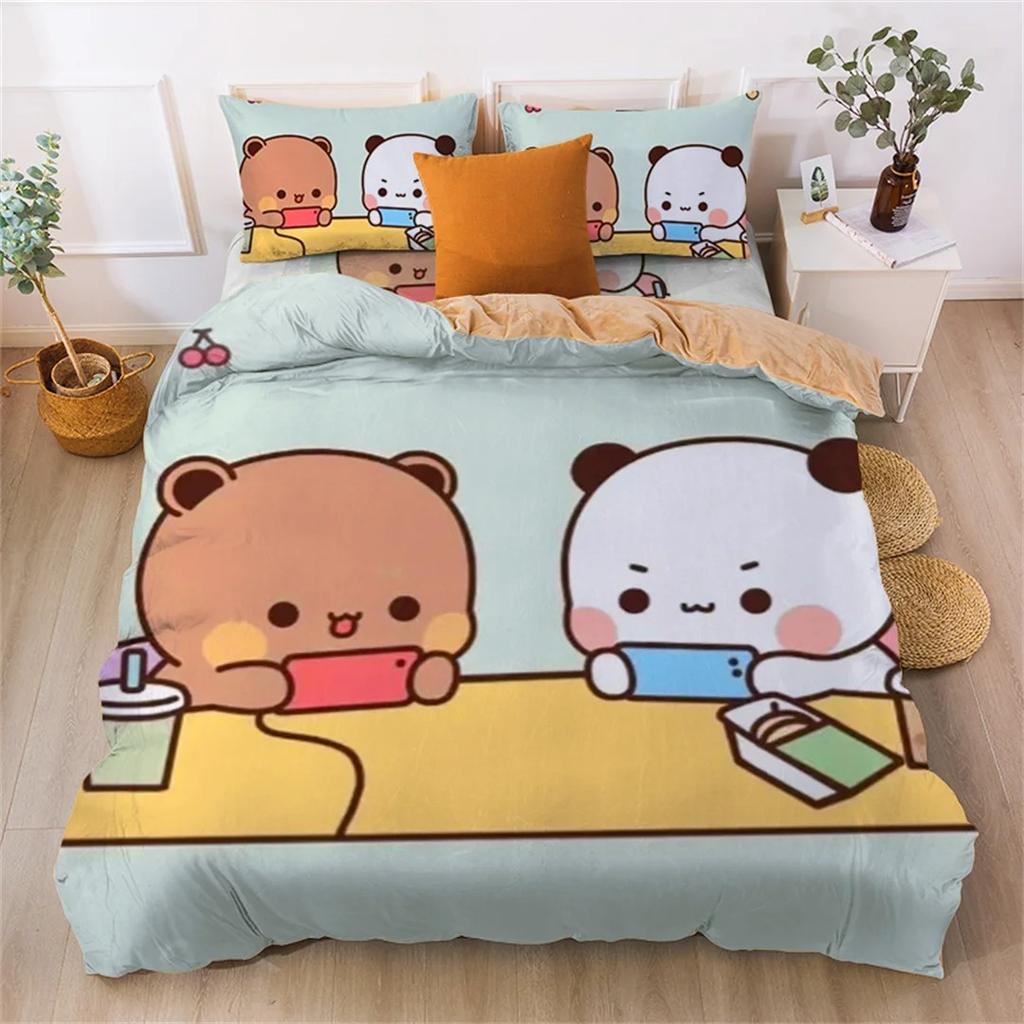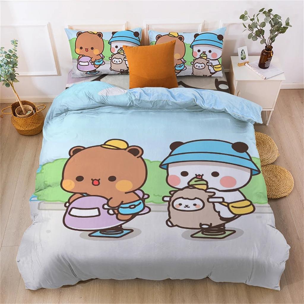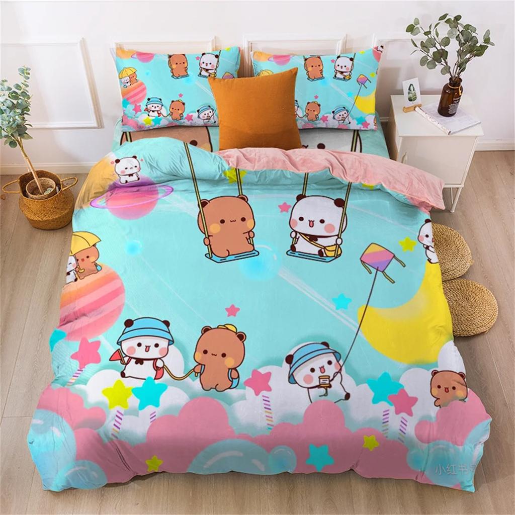 Милый Постельный Комплект с Мишками, Пододеяльник с Принтом Мишек Бубу Дуду для Детей Мальчиков Девочек Подростков, Пододеяльник с Мультяшным Животным Одиночный