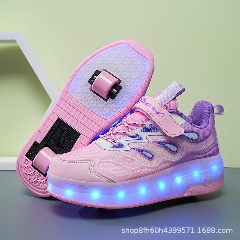 Роликовые кроссовки на двойных колесах, студенческая версия, роликовые кроссовки с автоматической усадкой, детские коньки с зарядкой