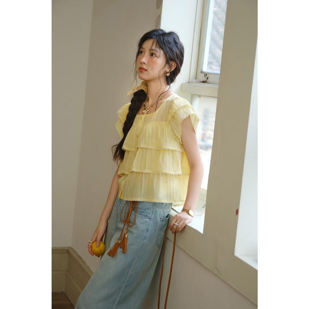 MISHOW Шифоновая блузка с рукавами-бабочками Женская 2025 Лето Новая женская одежда Ретро Квадратный вырез Пуговицы Повседневная рубашка MXD30X1488 — купить товар онлайн с бесплатной доставкой по всему миру!
