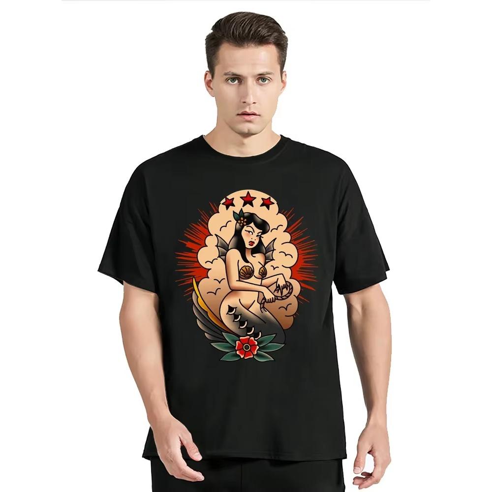 Летняя футболка Pin Up Girl Hot Rod Татуировка Футболка Музыкальный Гараж Олдскул V8 США V6 Футболка Мода Круглый вырез Унисекс Топы Футболки