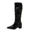 Популярный стиль большой обхват голенища ковбойские сапоги из коровьей кожи новые универсальные с острым носком с отделкой внахлест пряжка на ремне толстый каблук высокие сапоги женские