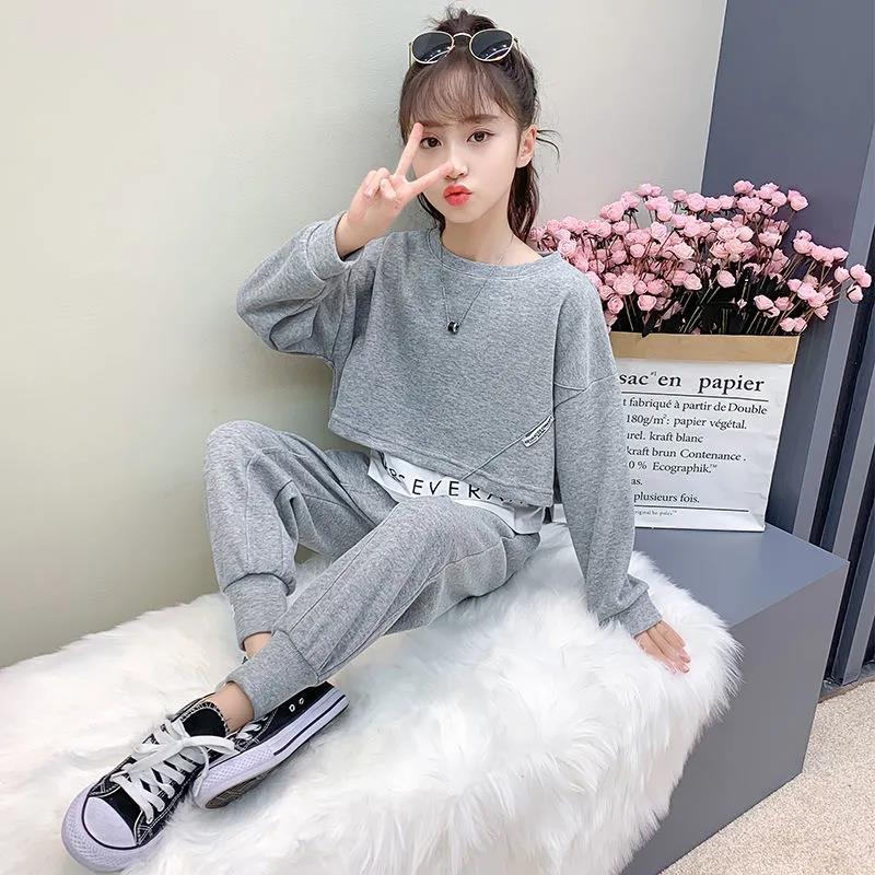 Модная одежда для девочек, комплект из 2 предметов для малышей, спортивный топ + брюки, повседневный костюм для весенне-осенней одежды
