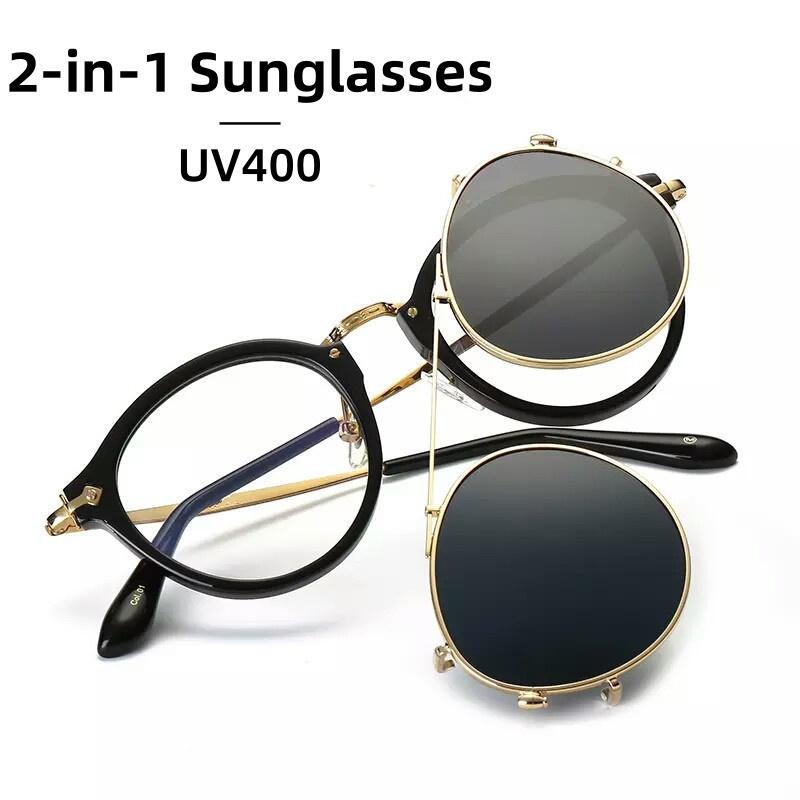Новые металлические солнцезащитные очки 2-в-1 Женские ретро зеркальные очки двойного назначения Мужские съемные внешние солнцезащитные очки UV400 Защитные очки