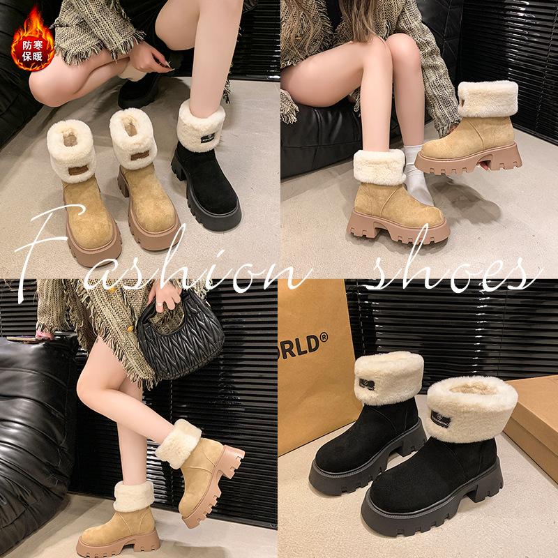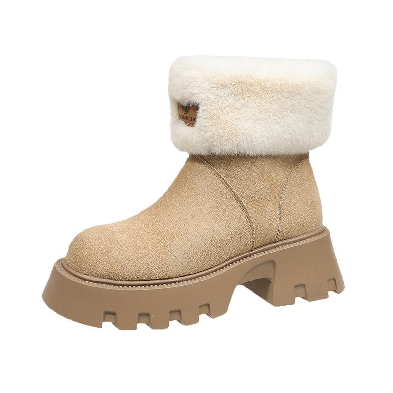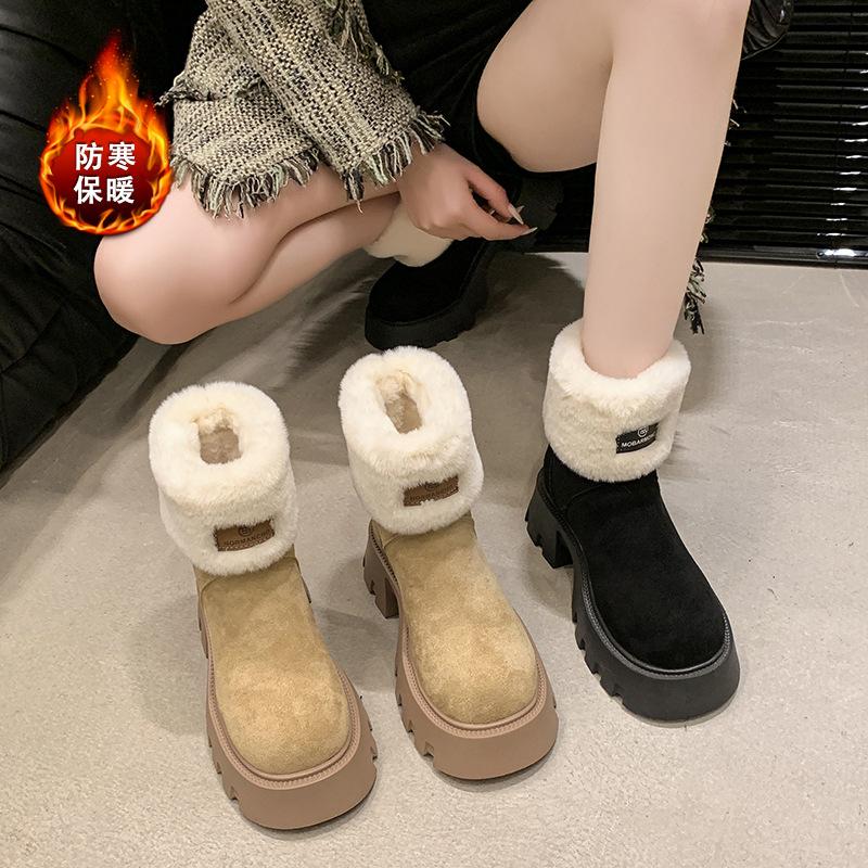 2025 новые зимние женские сапоги на толстой подошве с увеличением высоты, плюшевые теплые ретро сапоги на толстом каблуке с меховым воротником