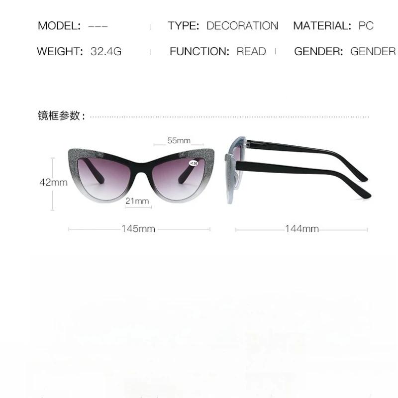 Модные новые очки для чтения «кошачий глаз» Роскошные солнцезащитные очки Модные и уникальные очки для дальнозоркости высокой четкости To+3.5+4.0