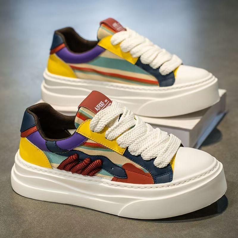 Мужские цветные кеды на шнуровке для скейтборда 2025 года, летние новые дышащие повседневные туфли на толстой подошве, уличная удобная мягкая обувь для ходьбы