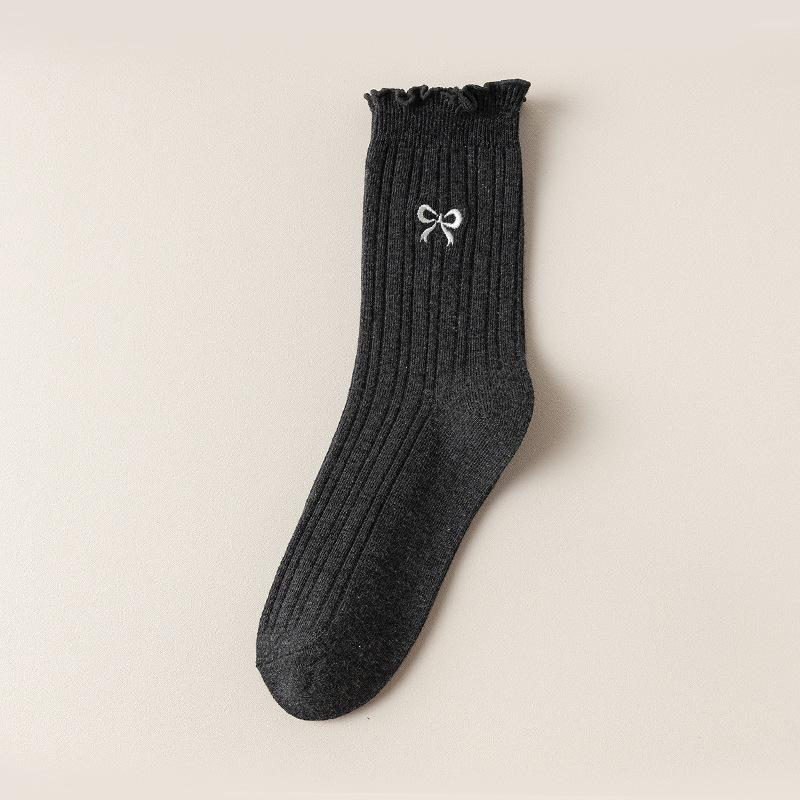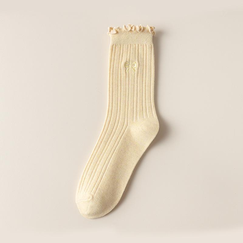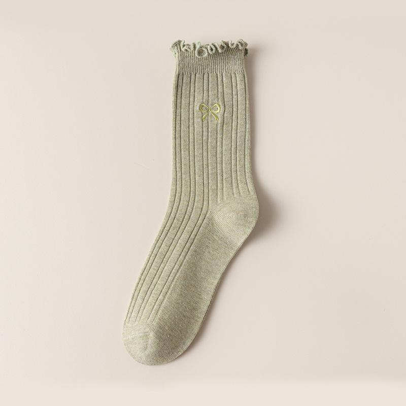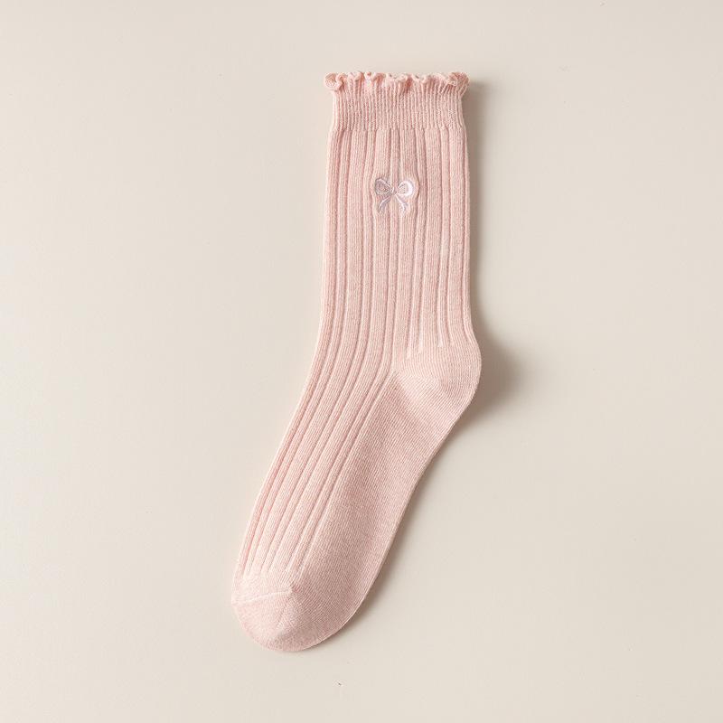 Женские весенне-осенние вышитые носки с бантом, деревянным краем и бесшовным мыском из хлопка пиле