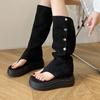 Thick-soled toe sandals women's summer new retro two-wear Roman cool boots, trousers stacked long boots