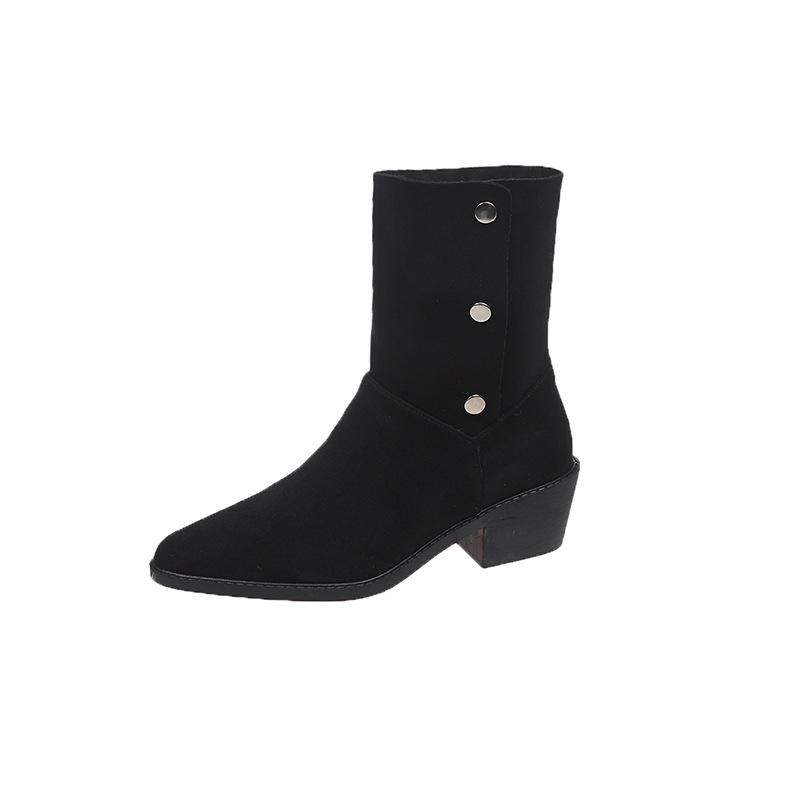 Женские короткие сапоги на толстом каблуке, французские нишевые сапоги-вестерны с отворотами, женские осенне-зимние остроносые модные сапоги на тонком толстом каблуке