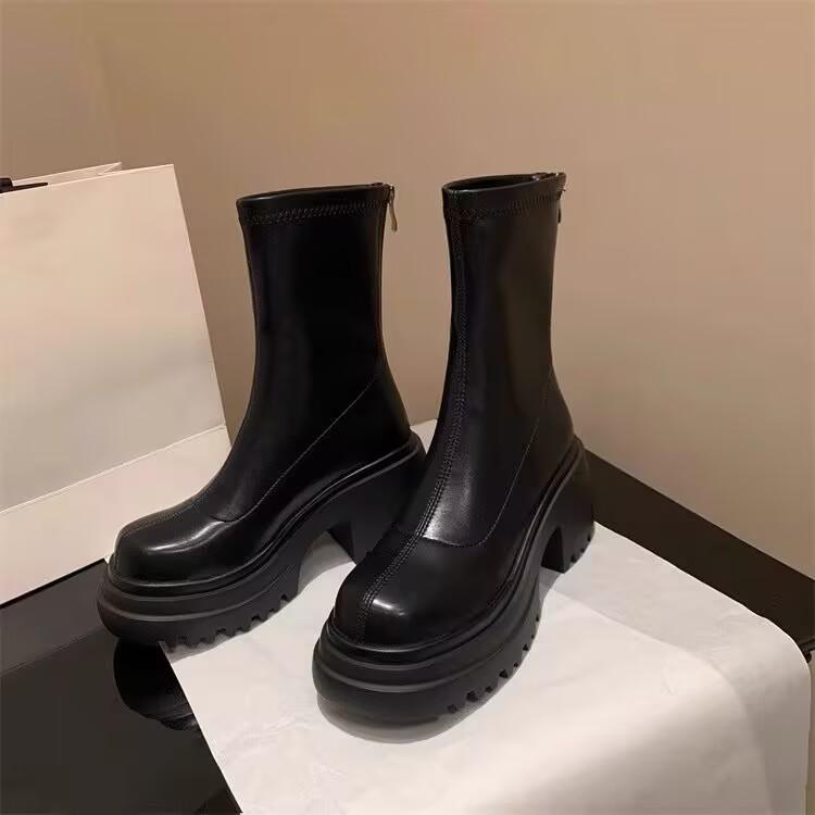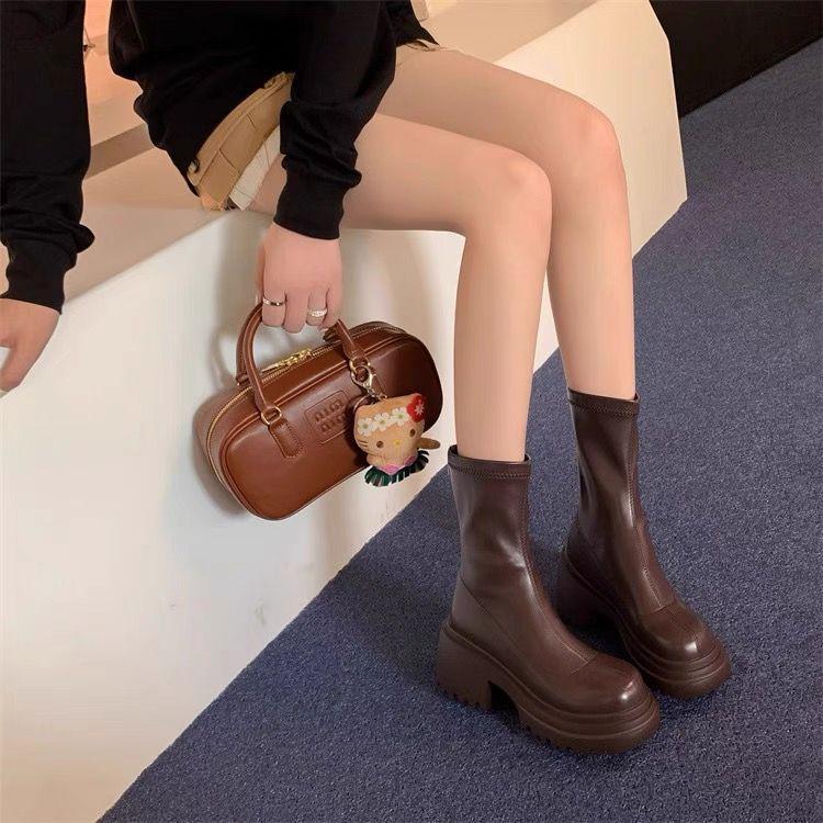 Martin boots women's small thick-soled heightening cm short boots autumn and winter elastic thin boots high heel showing legs long medium boots