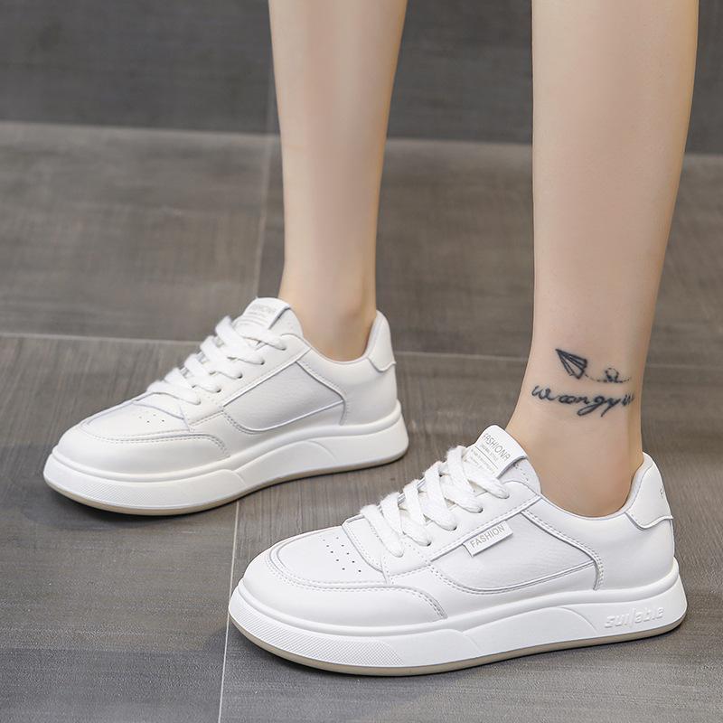 Мягкая кожа маленькие белые туфли женские весна и осень новые универсальные тонкие спортивные повседневные дышащие мягкая подошва студенческие туфли на плоской подошве