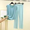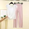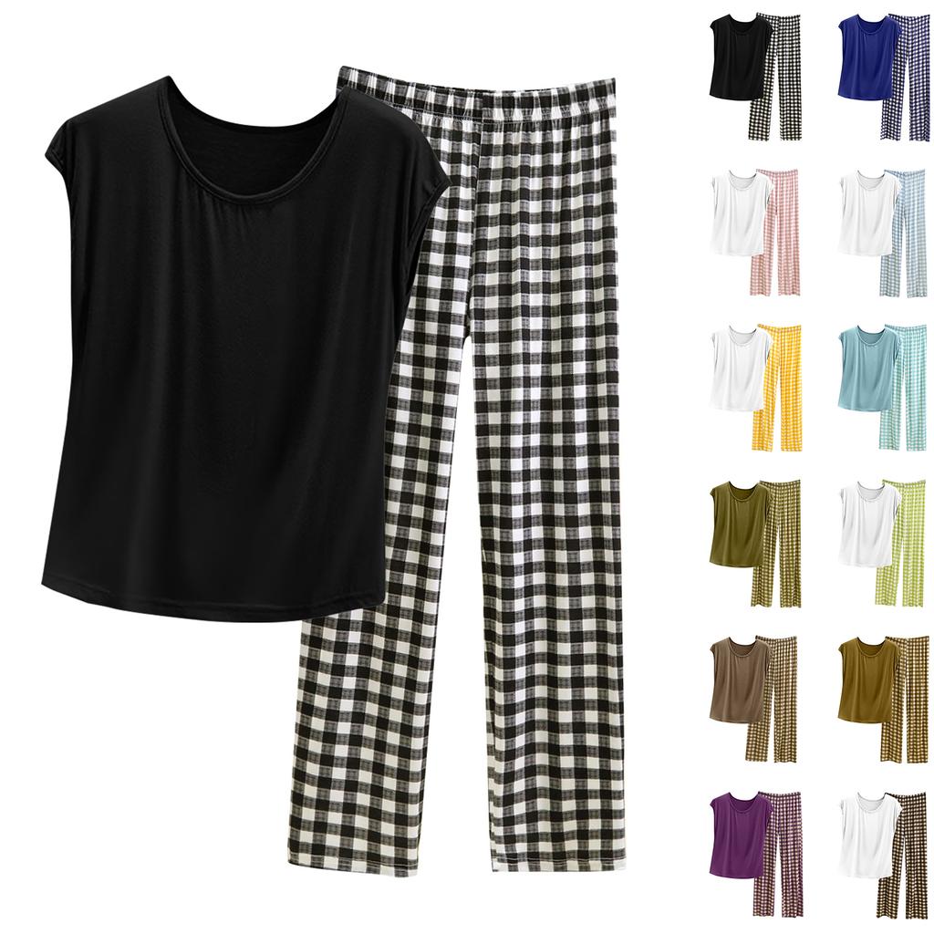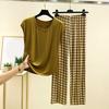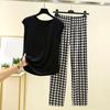 Женский повседневный и удобный топ с круглым вырезом однотонной расцветки и брюки с клетчатым принтом большого размера — купить товар онлайн с бесплатной доставкой по всему миру!