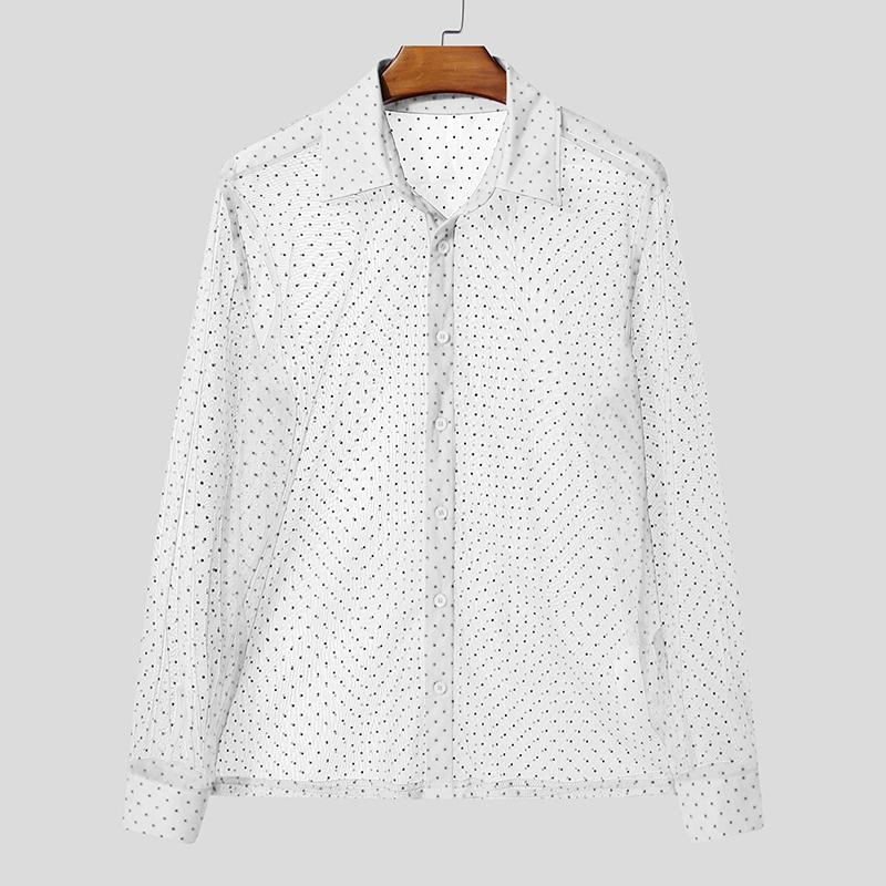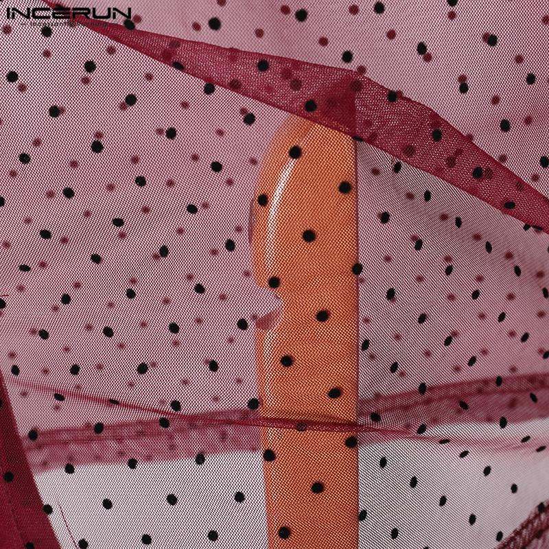 INCERUN Мужские рубашки с лацканами, длинными рукавами, из сетки, прозрачные, в горошек