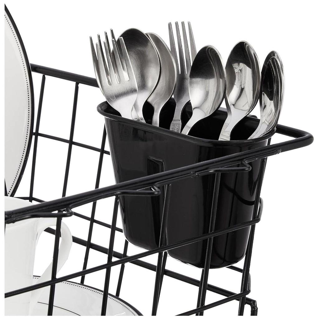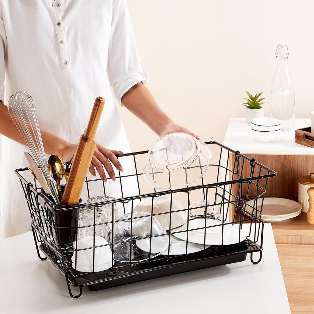 Многофункциональный дизайн: Он служит как сушилка для посуды, так и корзина для сушки кухонной утвари с держателем для разделочной доски/стекла/крышки.,