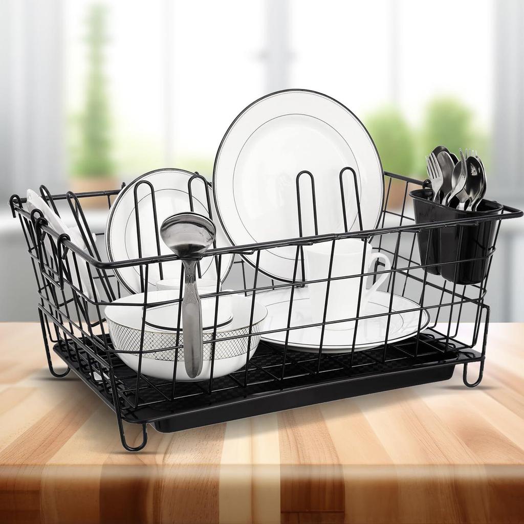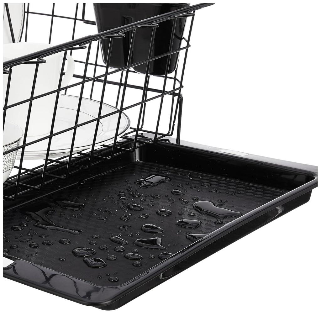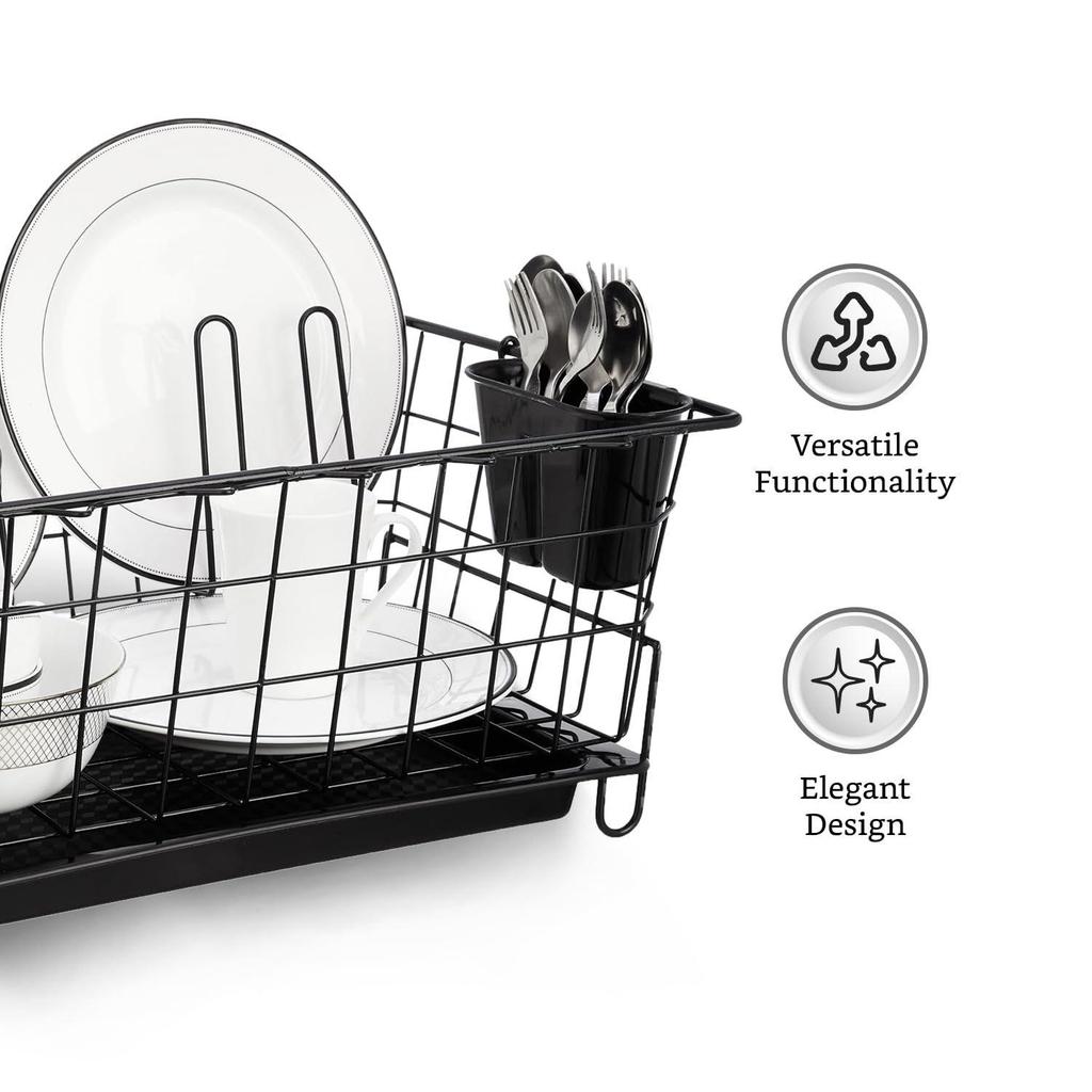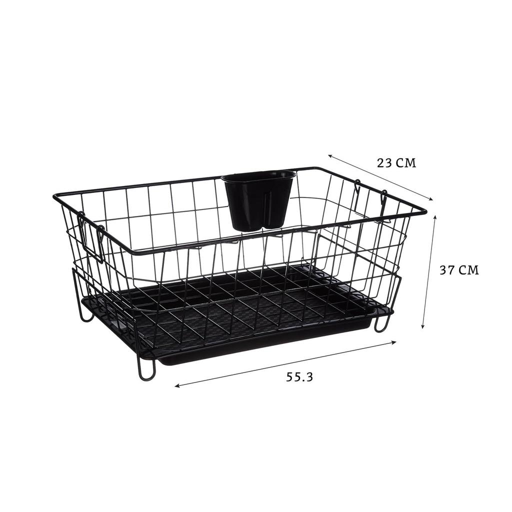 Роскошная стальная сушилка для посуды с поддоном для стекания | 3 шт. держатель для разделочной доски и стекла/крышки | Кухонная корзина для сушки посуды | 55,3 см X 37 см X 23 см | Черный