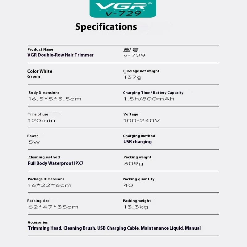 ➽➽➽ Это оригинальная электробритва для волос бренда VGR, с мощным двигателем, превосходным внешним видом, безопасной и надежной конструкцией, комфортным использованием, и непревзойденным соотношением цены и качества, это VGR V-729.