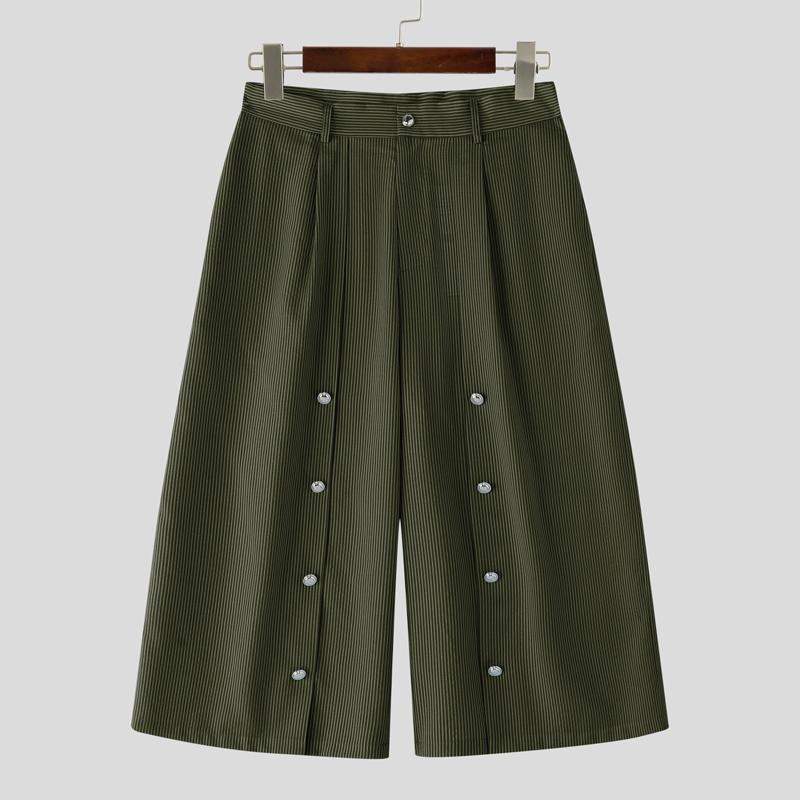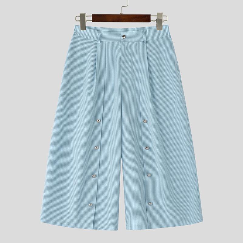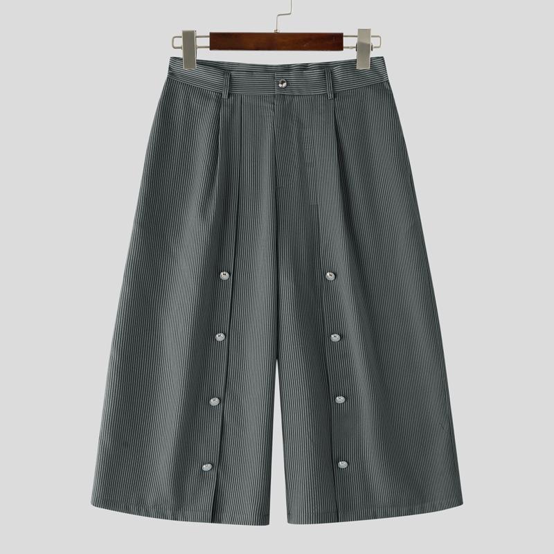 INCERUN Мужские капри, повседневные, свободные, с широкими штанинами, на пуговицах, полосатые, укороченные брюки, шорты