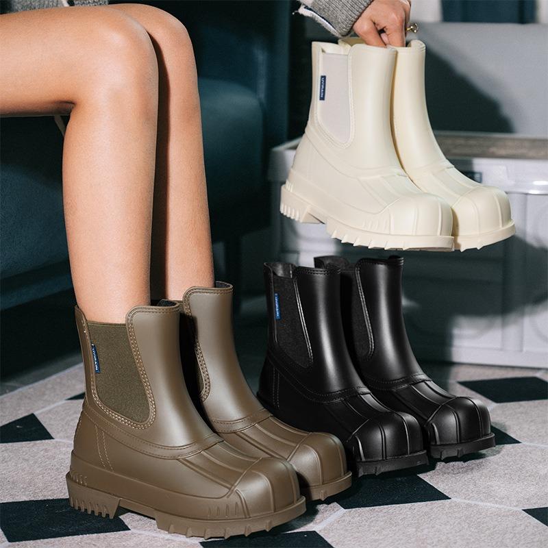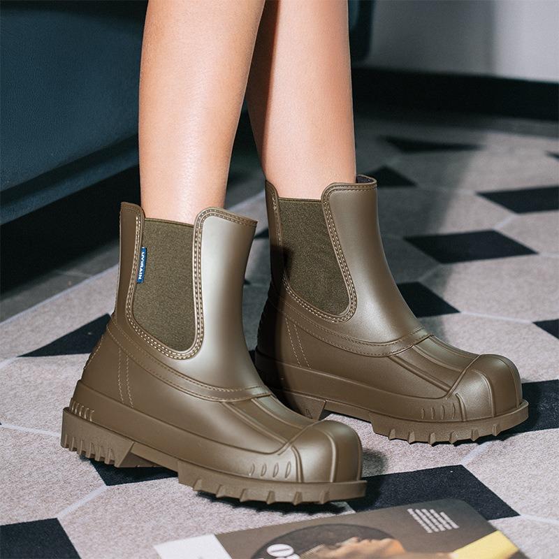 Army green elastic woven rain boots women's fashion outer wear waterproof rubber shoes short boots short water boots women's boots