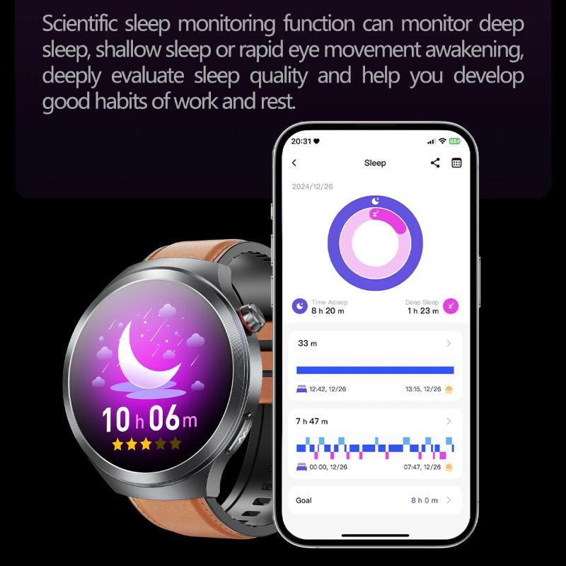 ▶Звонки по Bluetooth, ЭКГ, функция мерло, функция экстренного вызова SOS, мониторинг кислорода в крови, дыхательные упражнения, женское здоровье (Отслеживание менструального цикла), микрофизическое обследование, определение настроения, определение усталости, мониторинг сердечного ритма, мониторинг температуры тела, 24-часовой мониторинг сна, удаленная забота о родственниках и друзьях, напоминание о сидячем положении и другие функции здоровья.