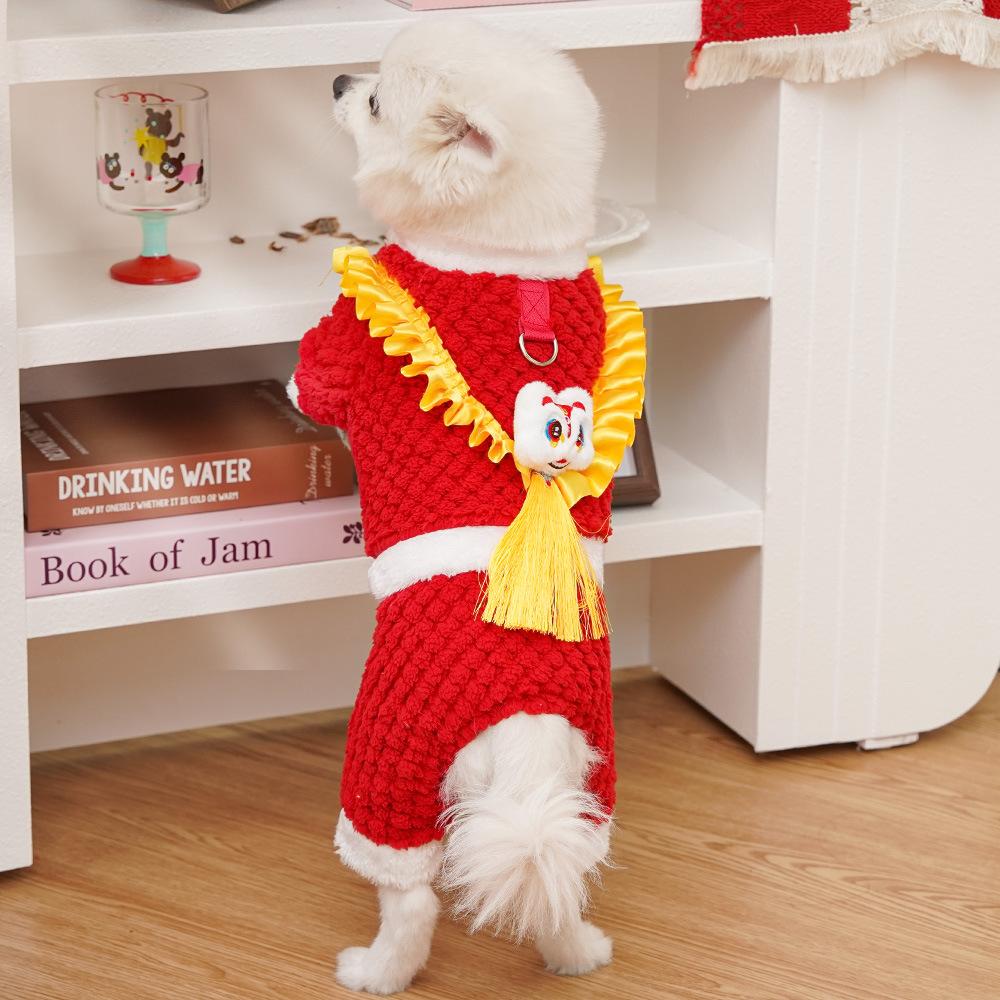 Кошка четвероногая одежда танец льва и бархат домашнее животное собака собака кошка одежда плюшевая собака одежда Тан праздничная собака бишон Новый год