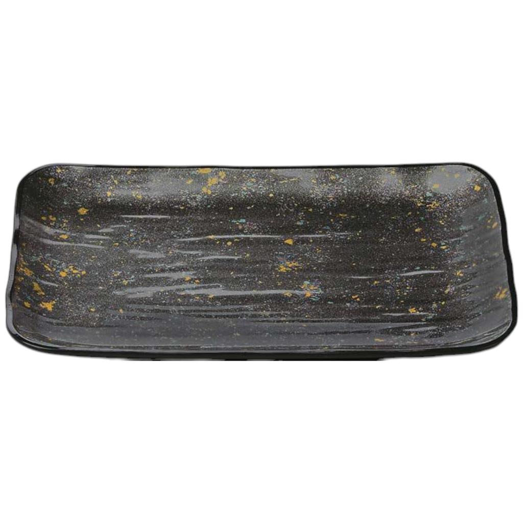 Premium Nigiri Sushi Long Rectangular Large Serving Plate with Black Dry Lacquer Made in Japan J-Kitchens Plate, 5.5cm Silver-Gloss Backing,