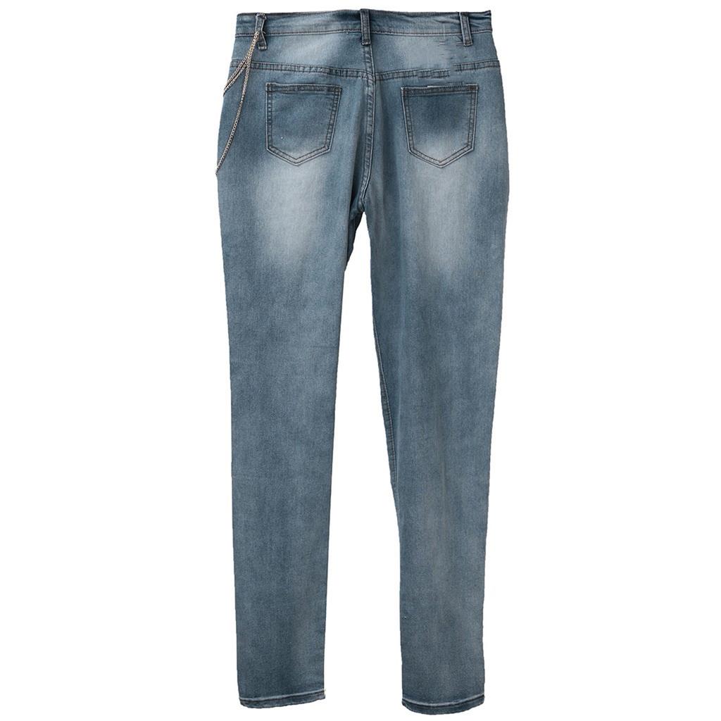 Модные женские однотонные узкие джинсы с рваными деталями, цепочкой и большими прорезями, брюки-карандаш