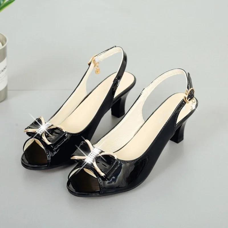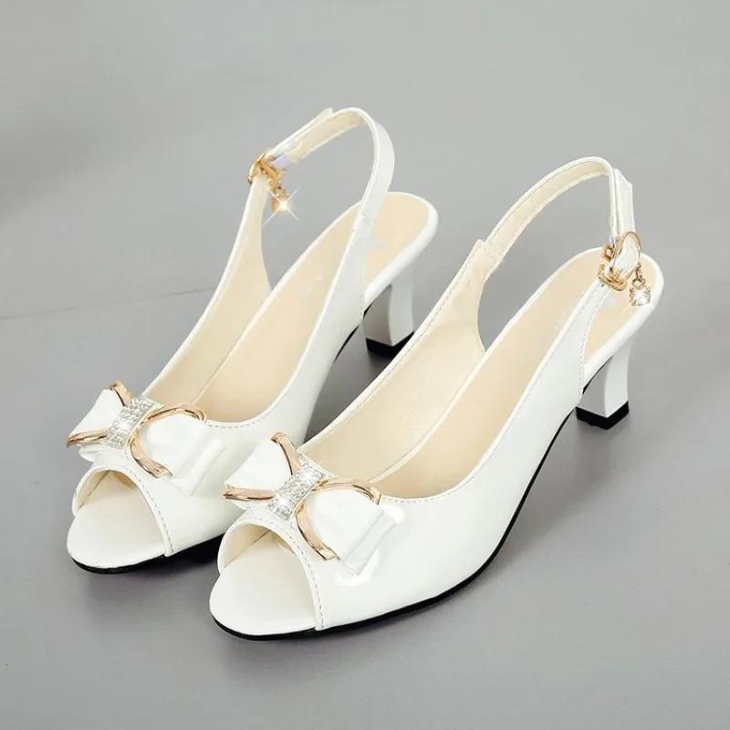 Женские сандалии 2024 Женские туфли на высоком каблуке-шпильке для женщин Сексуальные туфли с открытым носком и вырезом-рыбкой Женские сандалии с бантом для вечеринки