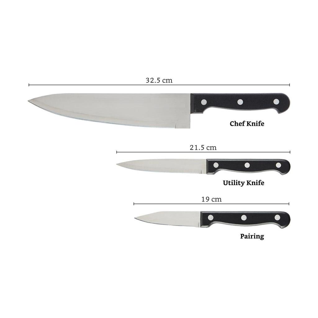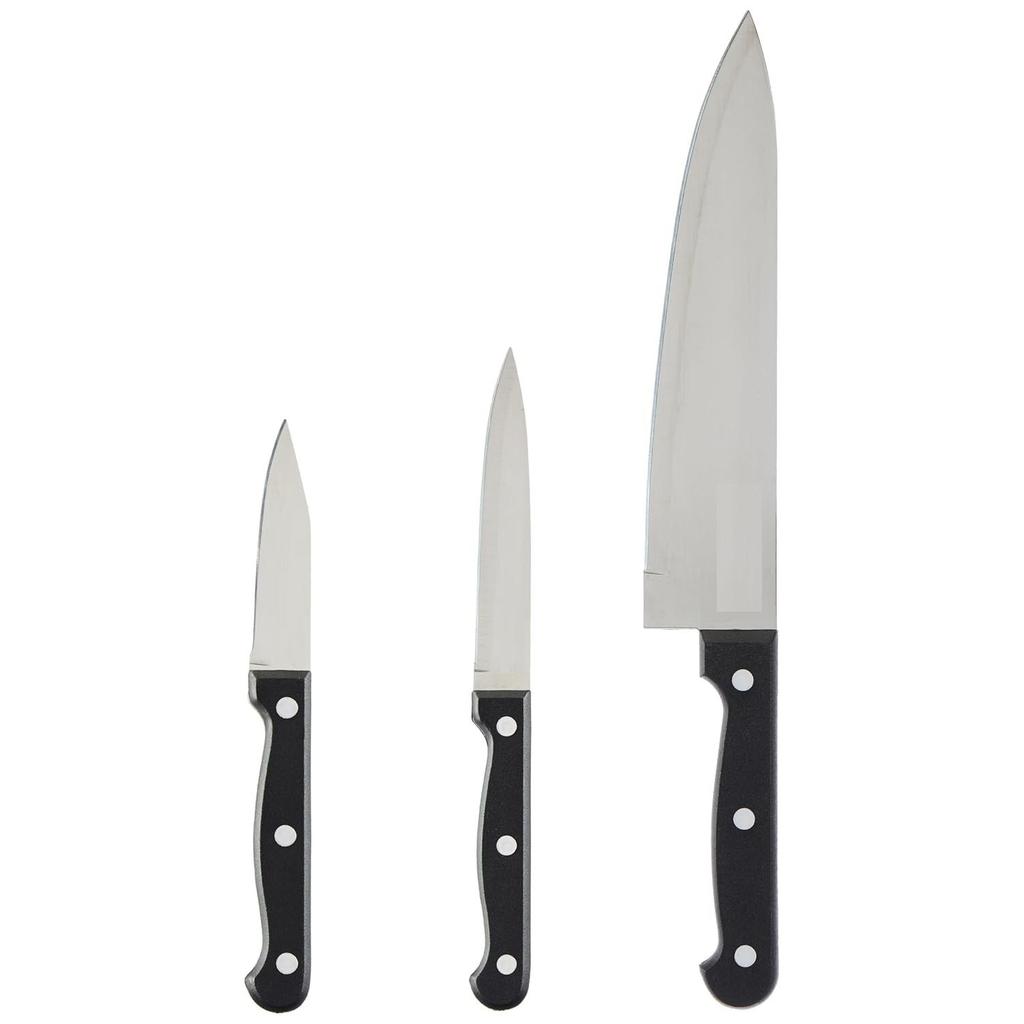 Набор кухонных ножей из высокоуглеродистой нержавеющей стали | Ручка с тройной клепкой | Набор из 3 штук (Серебряный)