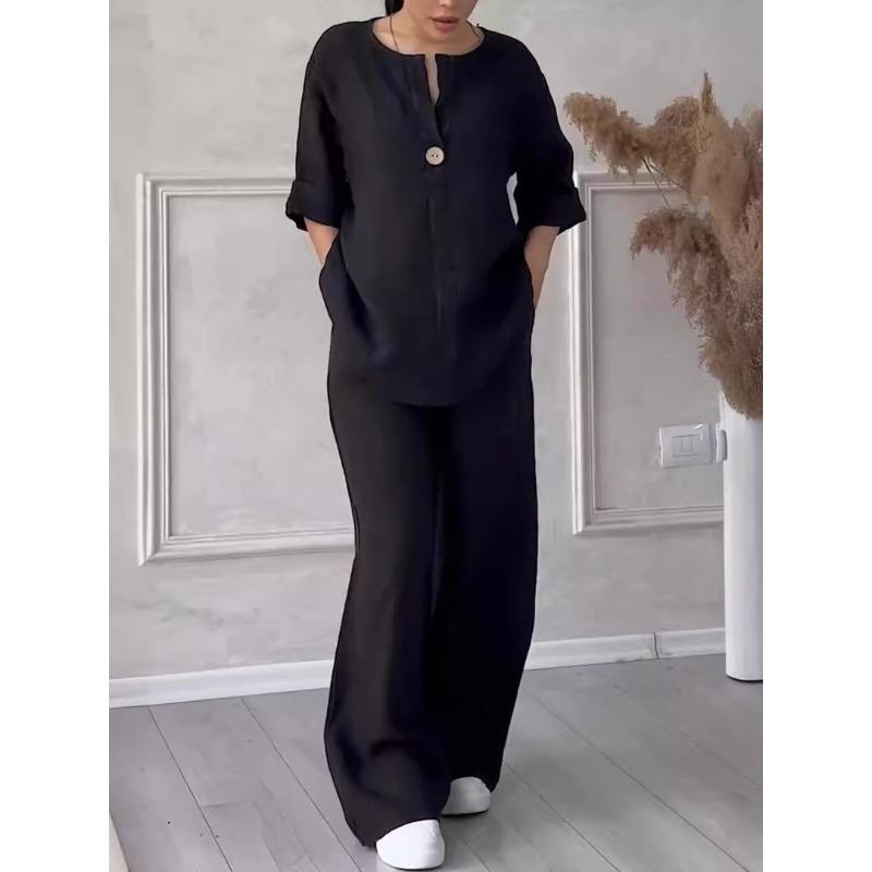 Модный женский удобный свободный топ, широкие брюки, повседневный хлопковый льняной костюм