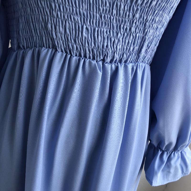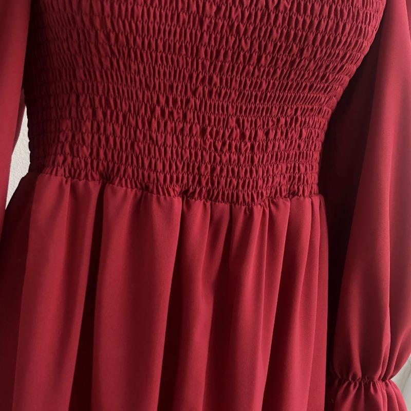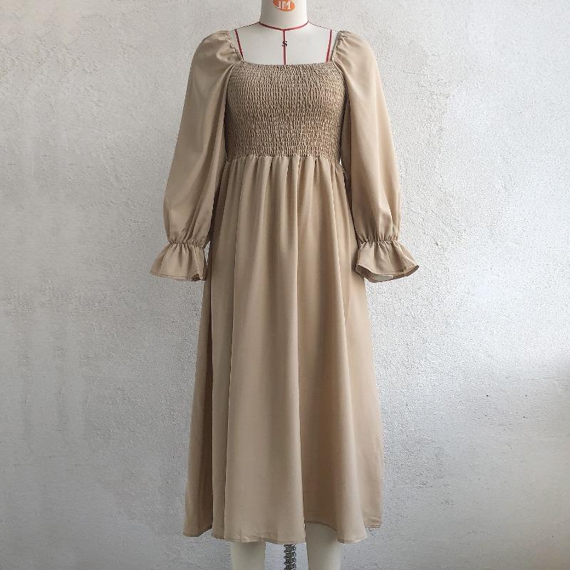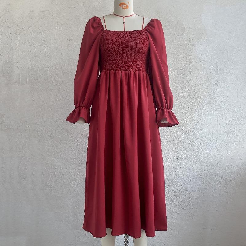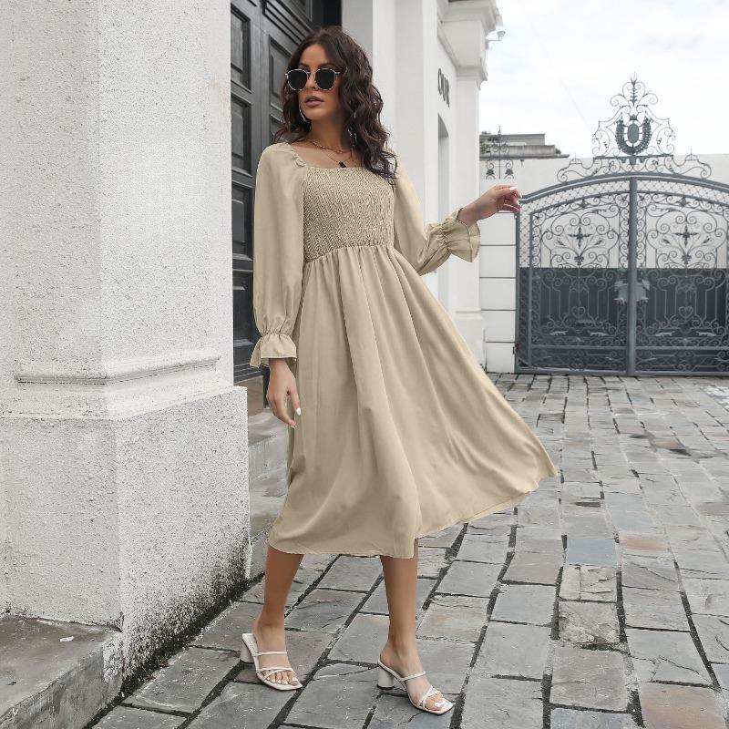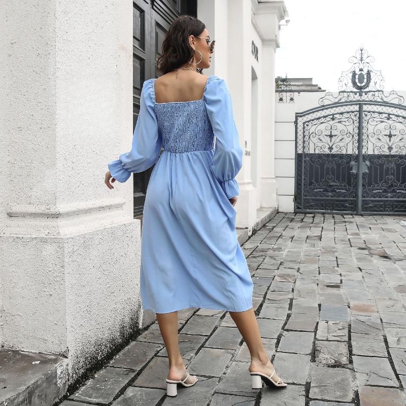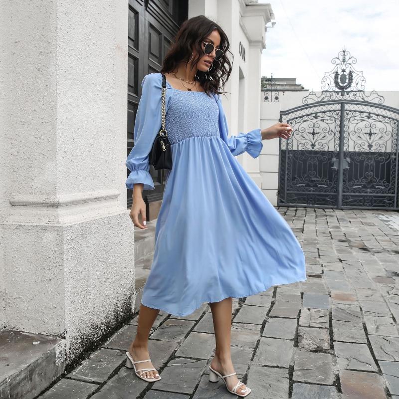 Женское платье миди весна-лето, расклешенные рукава, А-силуэт, квадратный воротник, высокая талия, однотонный цвет, S-XL