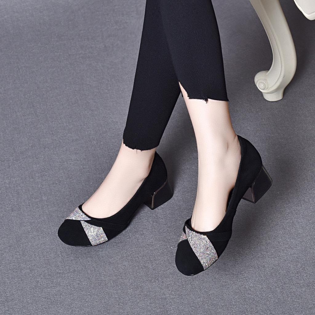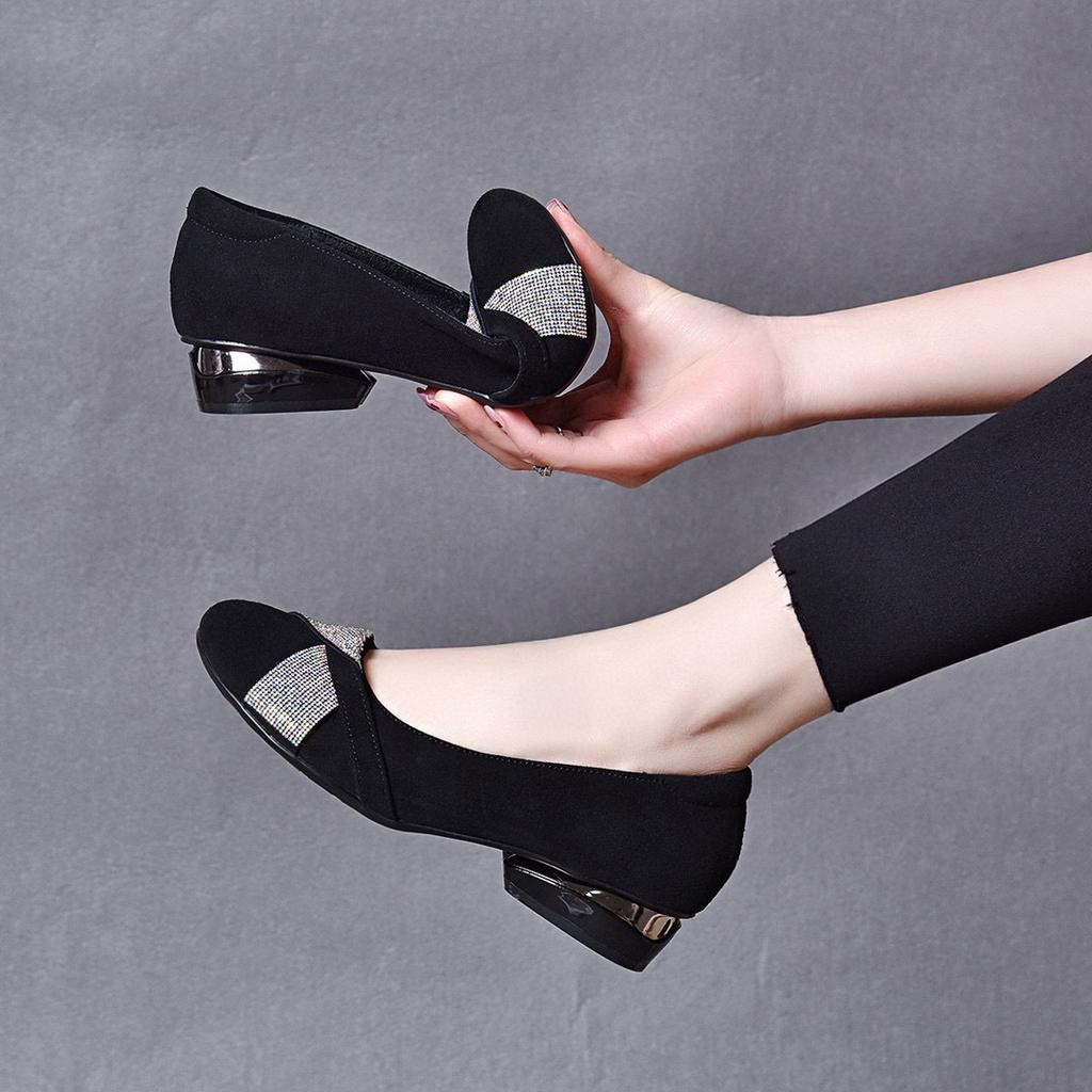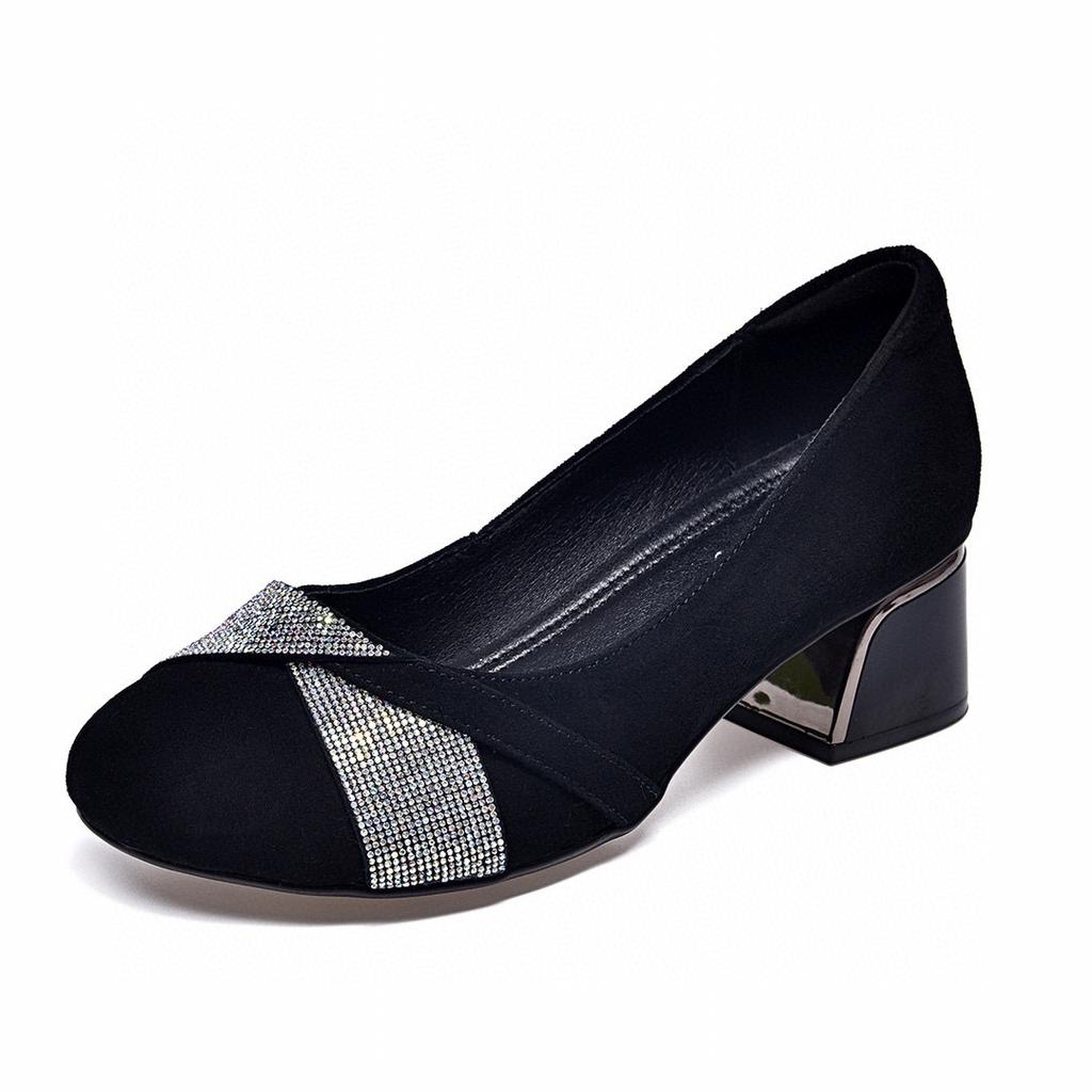 Женские туфли-лодочки с круглым носком, весенняя новинка, стразы, овечья кожа, мелкий вырез, две высокие темпераментные женские туфли