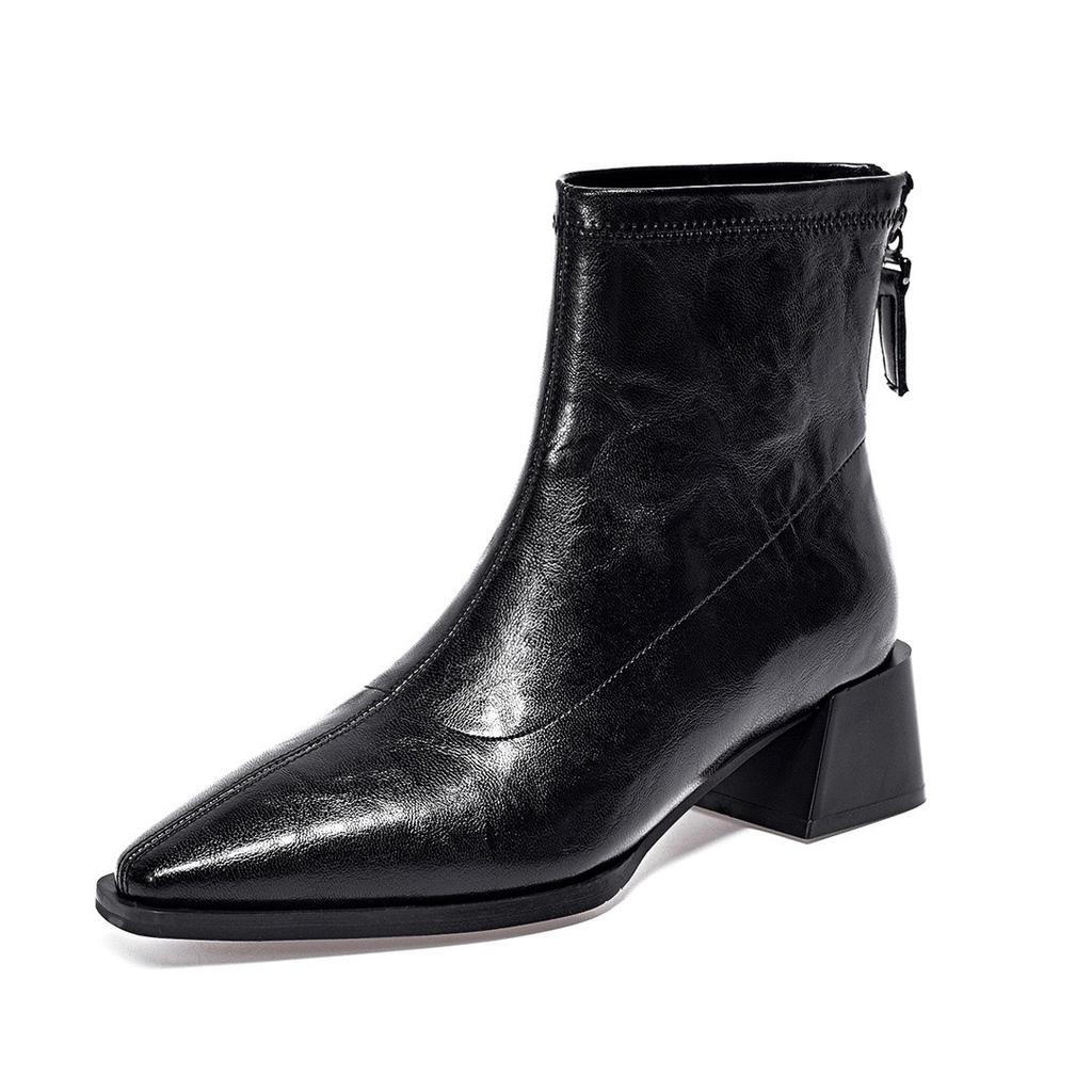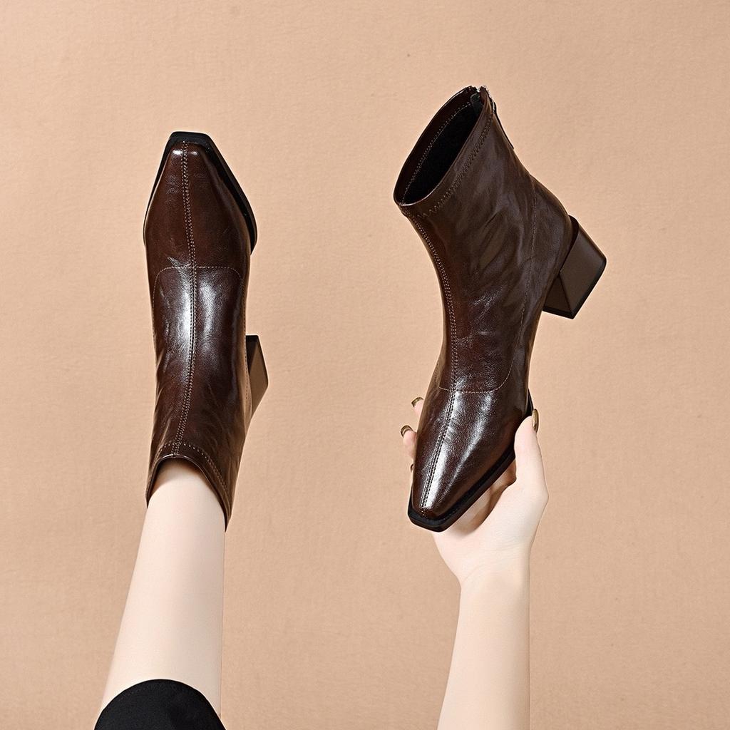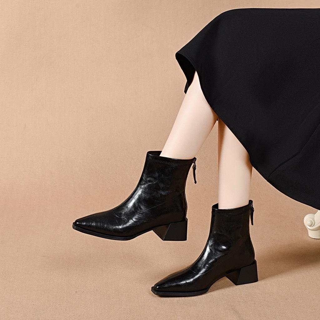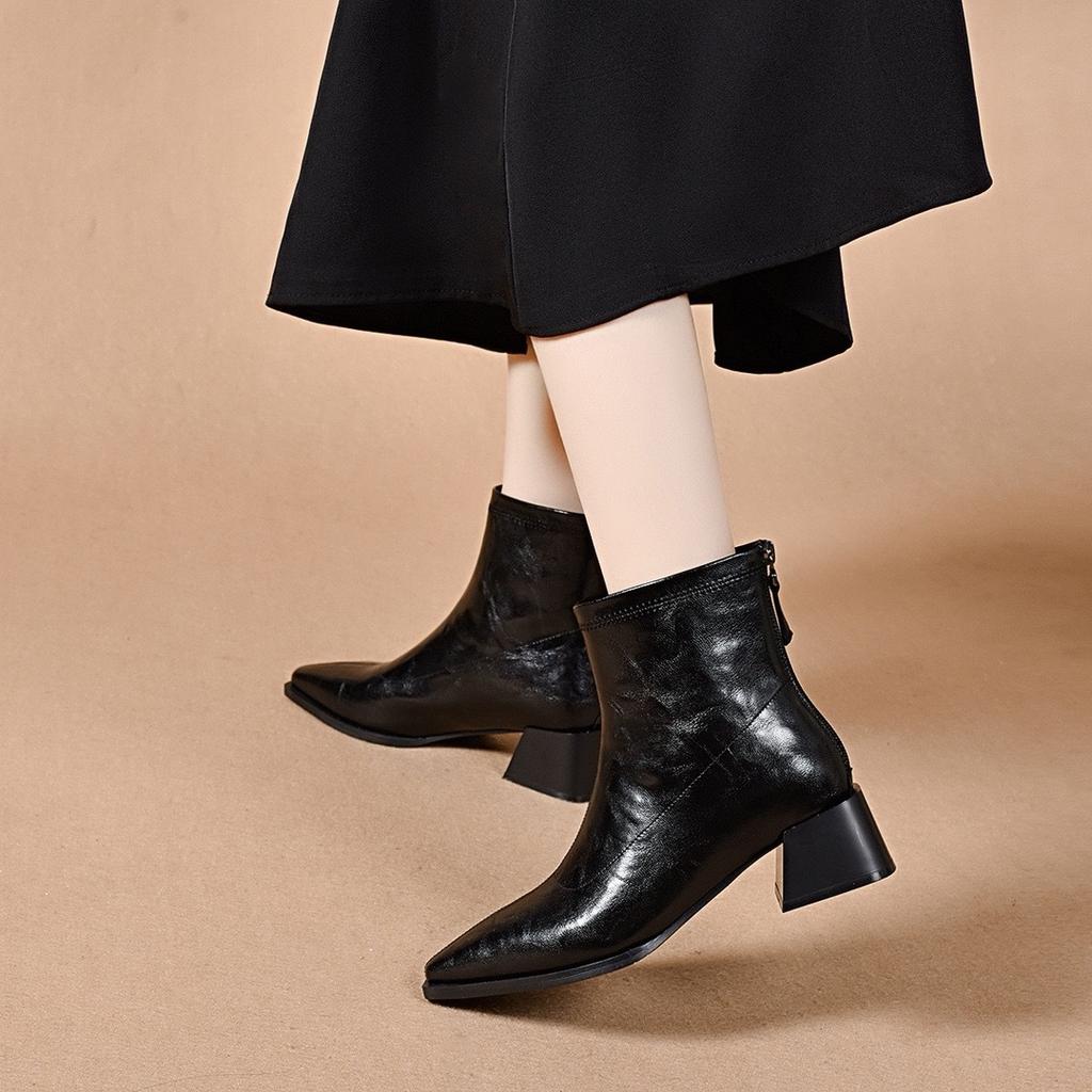 Остроносые короткие ботинки, прямые ботинки, женские, простые, с темпераментом, с задней молнией, кожаные ботинки, на высоком каблуке, ботинки челси
