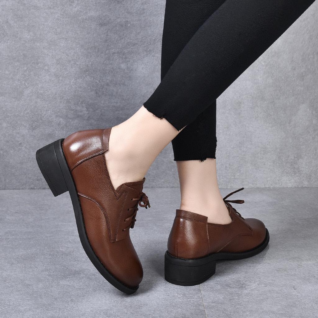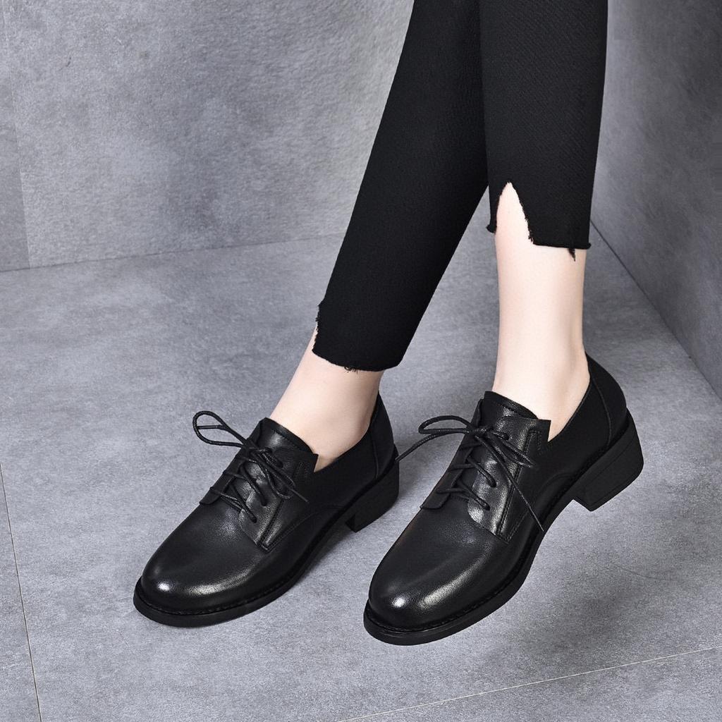 Маленькие кожаные туфли женские осенние новые из первого слоя коровьей кожи на шнуровке полированные ретро на плоской подошве одинарные туфли на все сезоны